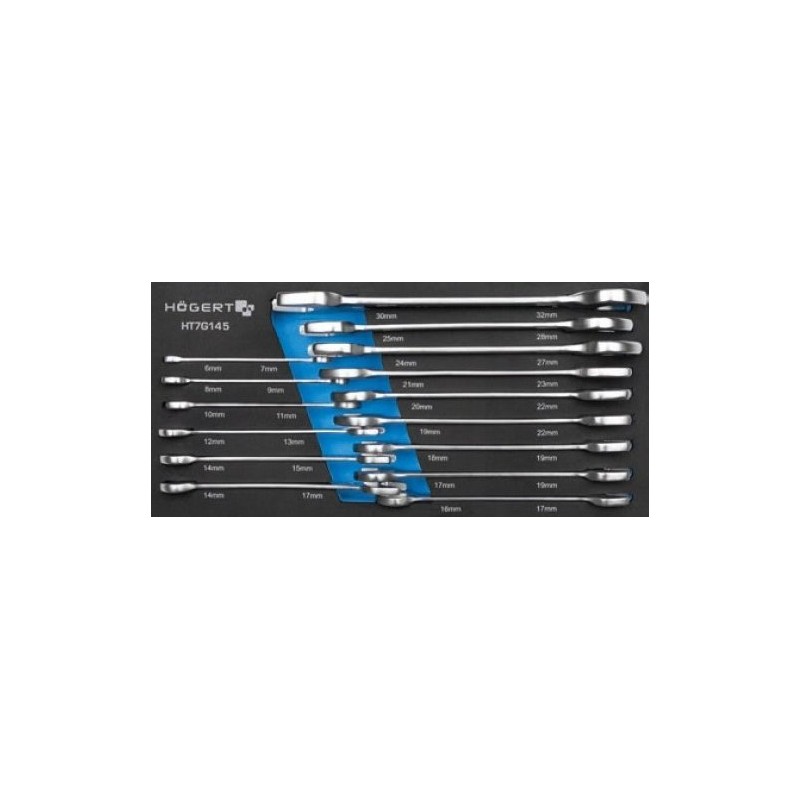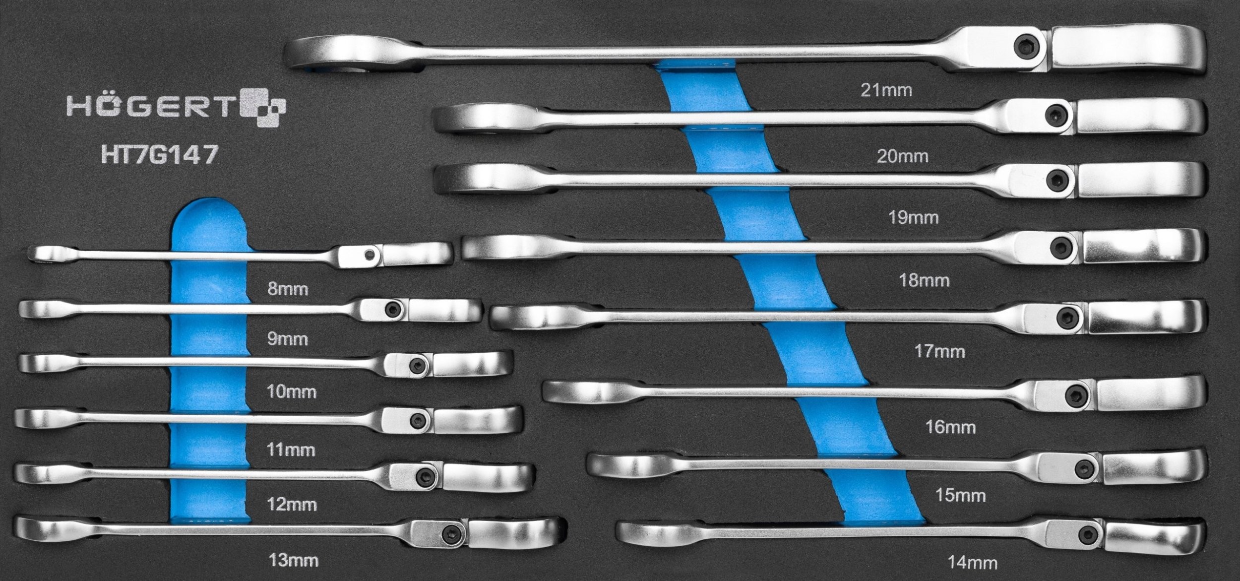 Högert Technik HOGERT KOMBINATIONSSCHLÜSSEL-SET MIT GELENK, 14-teilig, EVA-EINLEGER
