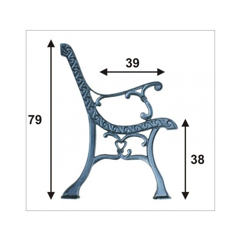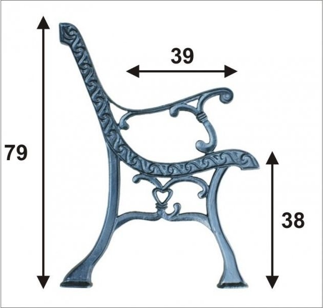 Gusseisernes Bein für die Bank „Chinka“. Das Set besteht aus einem rechten und einem linken Bein. Für den Eigenbau der Bank werden mindestens 2 Beine und 8 Bretter benötigt.