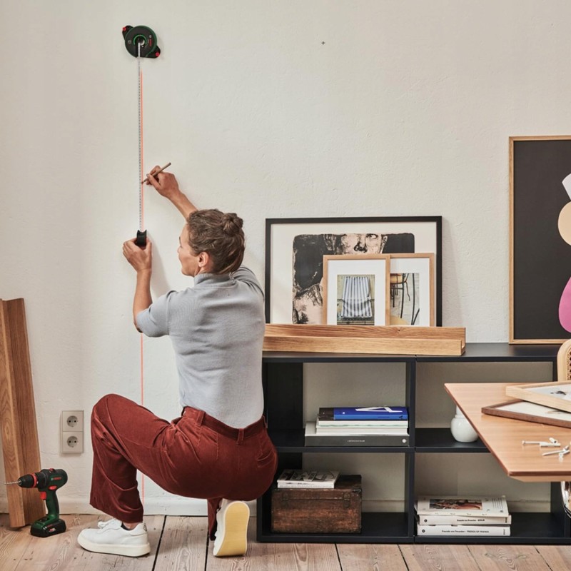 Das integrierte Maßband mit einer Reichweite von bis zu 2 m ermöglicht eigenständige Messungen, was den Arbeitskomfort erhöht und wertvolle Zeit spart. Dies ist eine hervorragende Lösung sowohl für Heimwerker als auch für Profis.