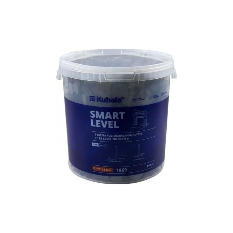 Die Fliesenausrichtungsclips von Kubala sind die ideale Lösung für alle, die Fliesen verlegen. Das Set enthält 800 Clips mit einer Stärke von 1,5 mm sowie einen praktischen 20-Liter-Eimer, was dieses Produkt besonders funktional macht.