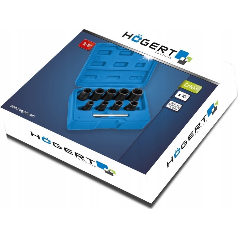 • 9 Steckschlüssel 10–19 mm;