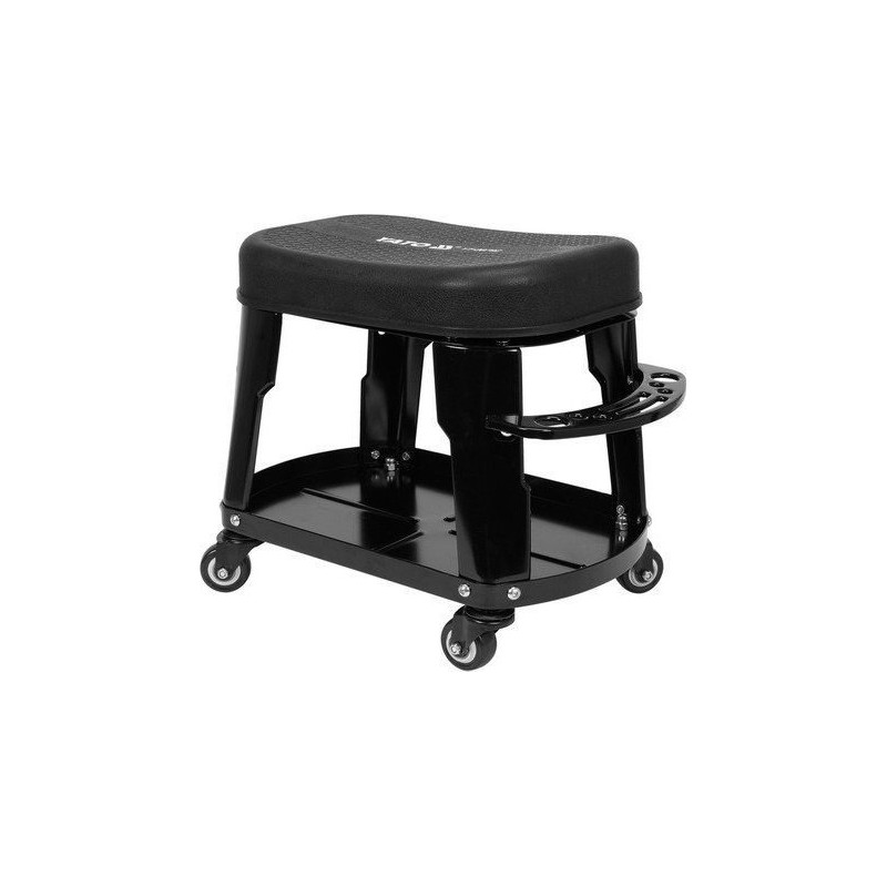Technische Daten: Sitzfläche: 360 x 260 mm Abmessungen des Hockers: 450 x 270 x 350 mm Tragkraft: 140 kg Der Hocker mit Rollen sorgt für Komfort bei der Arbeit in der Werkstatt. Die Werkzeugablage hilft dabei, den Arbeitsplatz aufgeräumt zu halten. Die Sitzfläche kann, nachdem sie vom Hocker abgenommen wurde, als Kniebank verwendet werden. **...