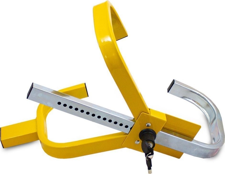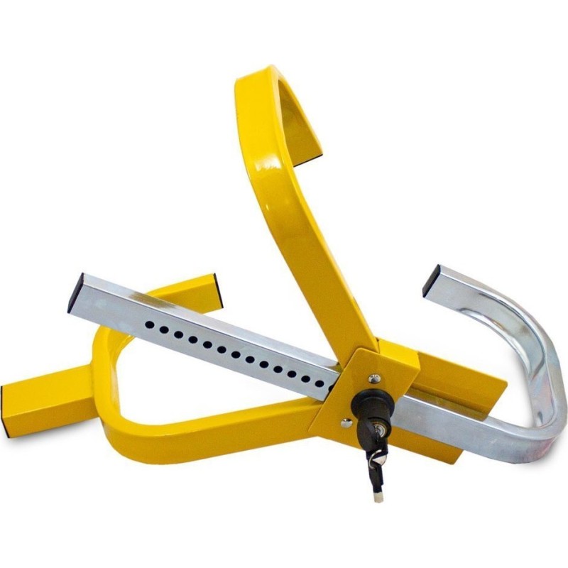 Mit dieser Radsicherung kannst du die Räder deines Fahrzeugs schnell und einfach blockieren. Das Radschloss ist für Räder mit einer maximalen Breite von 215 mm geeignet. Dank der Rastfunktion lässt sich die Radsicherung schnell und einfach anbringen. Sie ist wetterfest und eignet sich für PKWs, Wohnwagen, Lieferwagen und Wohnmobile. Im Lieferumfang der Radkralle sind zwei Schlüssel enthalten.