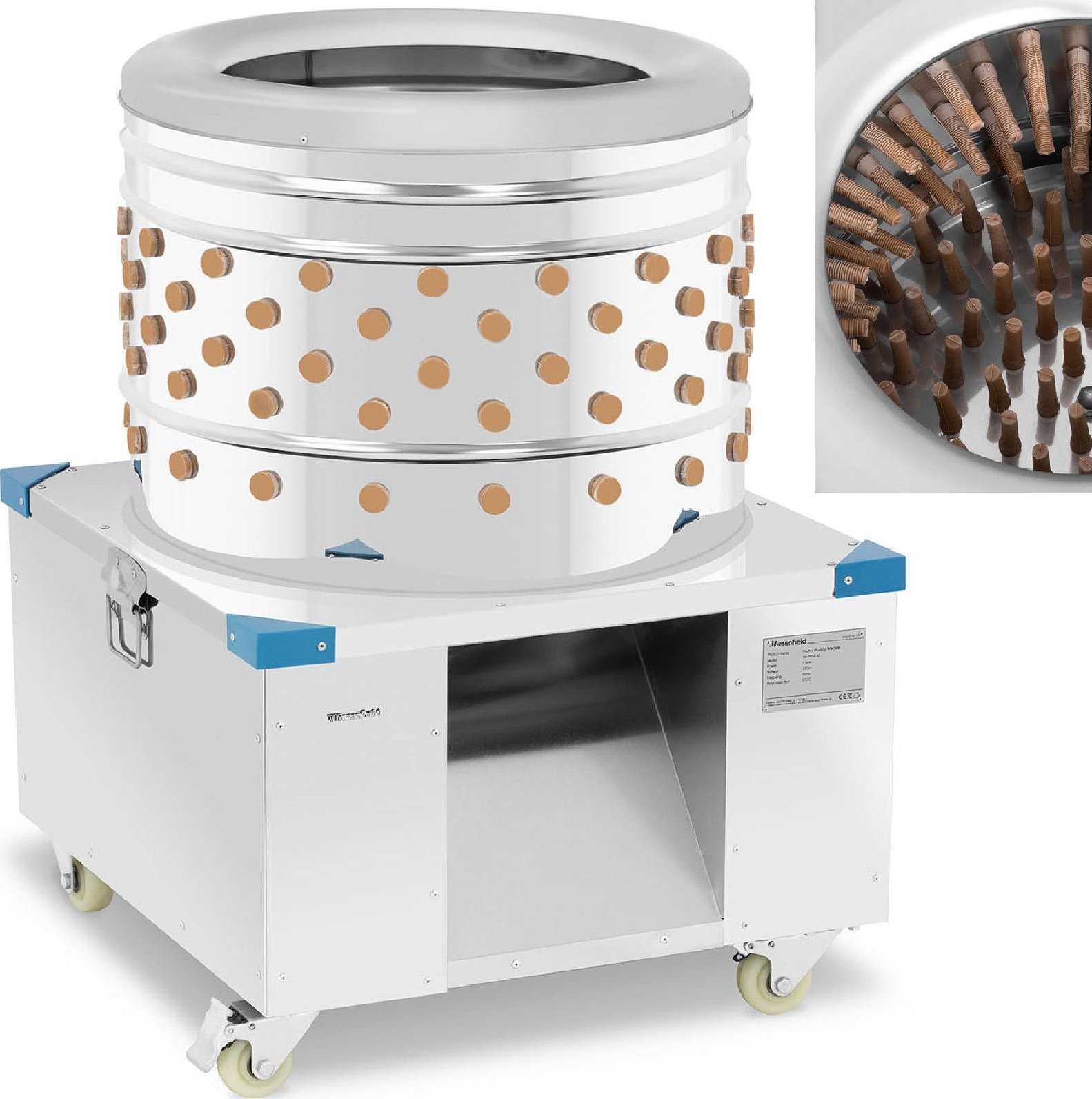 Wiesenfield Federentfernungsmaschine für Geflügel, 540 kg/h, Durchmesser 60 cm Federentfernungsmaschine für Geflügel, zum Rupfen und Entfernen der Federn