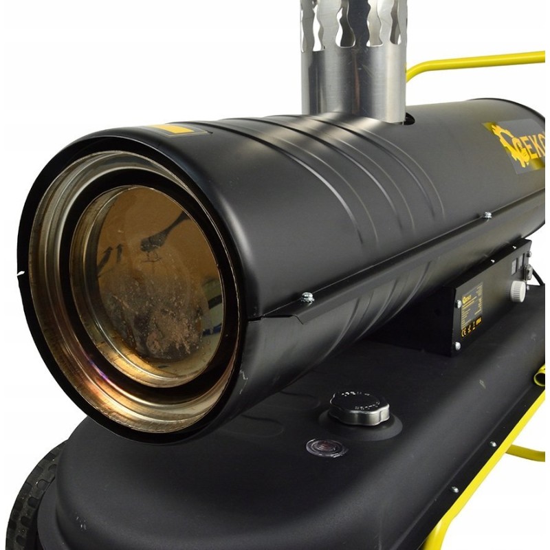 Der elektrische Heizstrahler mit 40.000 W = 40 kW, ausgestattet mit einem Thermostat und einem Kamin, ist ein hocheffizientes Gerät, das einen konstanten Zufluss großer Mengen erwärmter Luft gewährleistet. Er verfügt über ein digitales Display, das die von uns gewählte Heiztemperatur sowie die Raumtemperatur anzeigt. Der Heizstrahler der Marke GEKO ist ein äußerst leistungsstarkes, langlebiges, sicheres und zugleich sehr einfach zu bedienendes Gerät. Ein Vorteil dieses Modells ist der Kamin, der die Ableitung der Abgase ermöglicht.