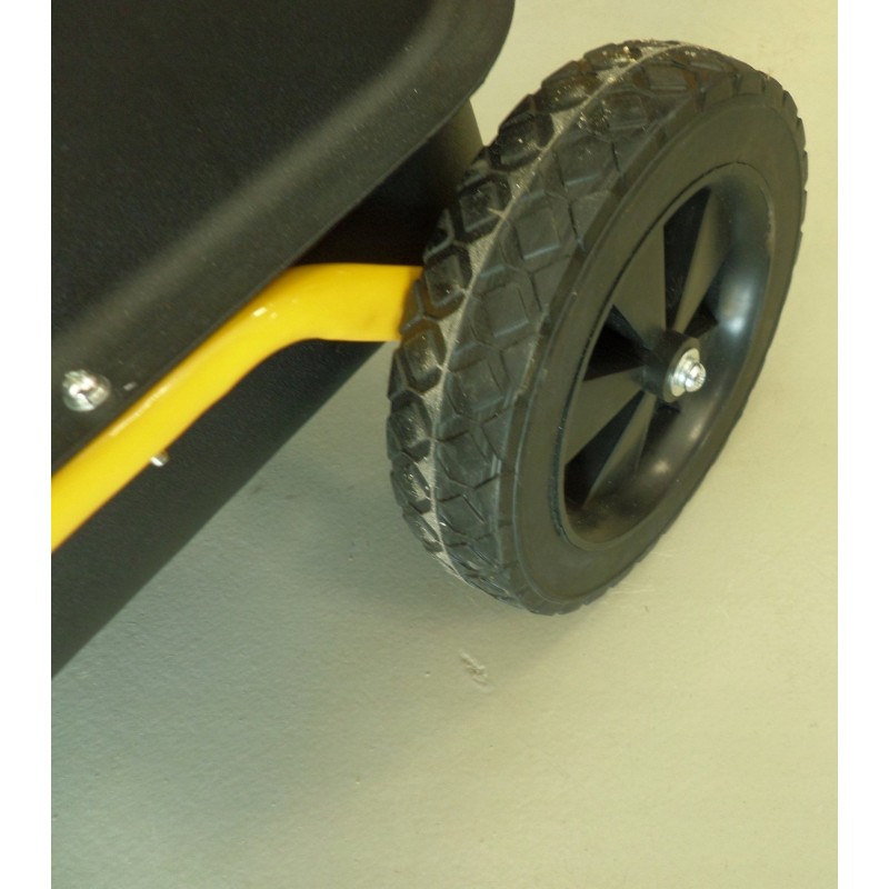 Ausgestattet mit zwei Rollen, die den Transport erheblich erleichtern