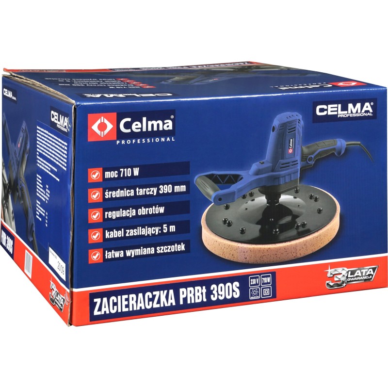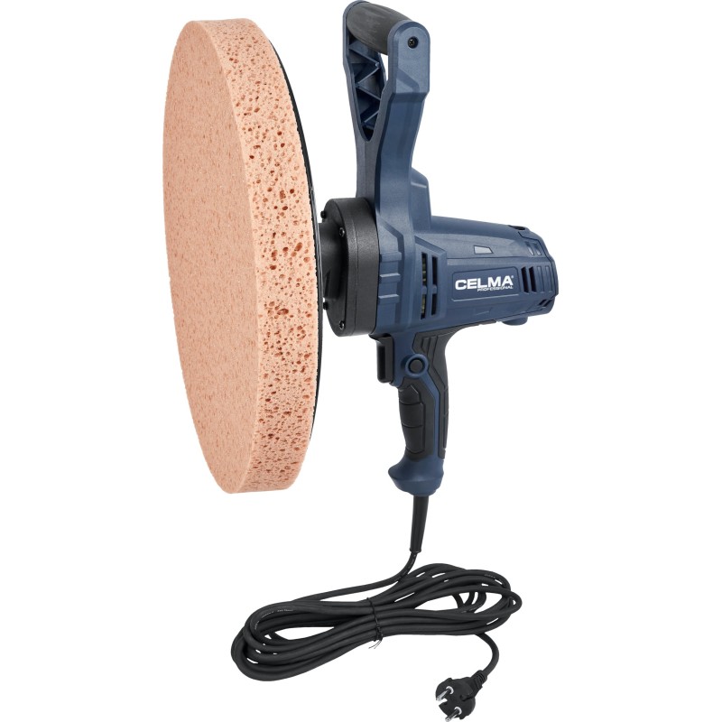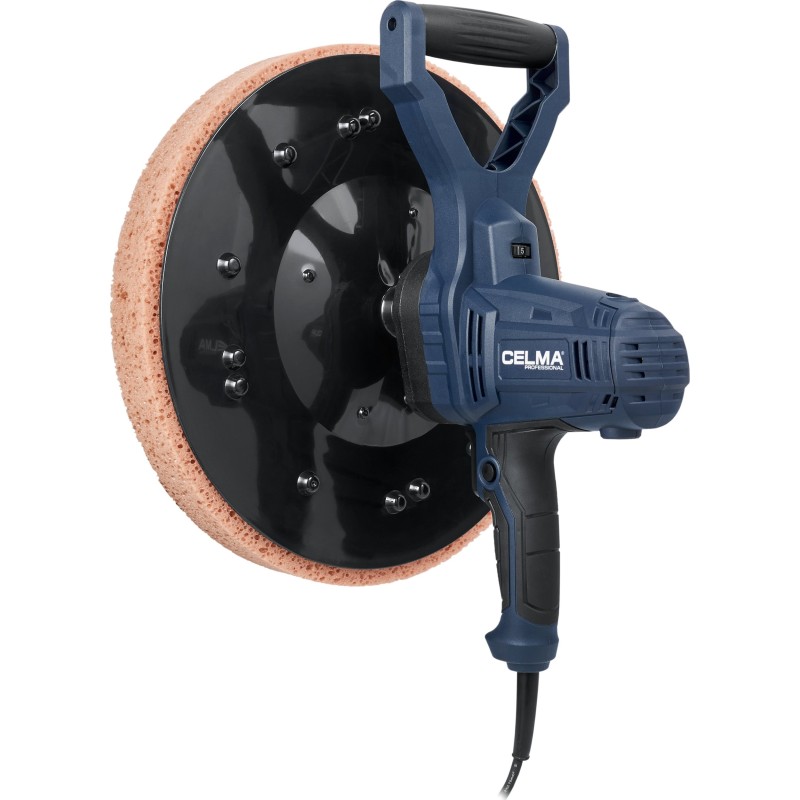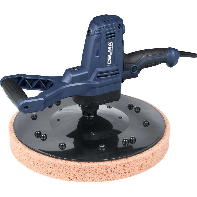 Die Glättmaschine CELMA Professional PRBt 390S ist zum Glätten und Glätten von Kalk-Zement-Putz, Außen- und Innenputz sowie zum Beseitigen von Unebenheiten bei „altem“ Putz, zum Ablösen von Tapeten, zum Entfernen von Mörtelausblühungen zwischen Ziegeln oder von angetrocknetem Putz auf Betonböden bestimmt. Das Gerät wurde für den Dauereinsatz auf großen Flächen wie Wänden, Decken und Böden konzipiert. Es bietet hohen Arbeitskomfort und außergewöhnliche Mobilität dank seines geringen Gewichts, der guten Gewichtsverteilung, der gut angeordneten gummierten Griffe und des langen, 5 Meter langen Netzkabels. Die stufenlose Drehzahlregelung über einen weiten Bereich ermöglicht die richtige Anpassung der Drehzahl an die jeweilige Arbeit.