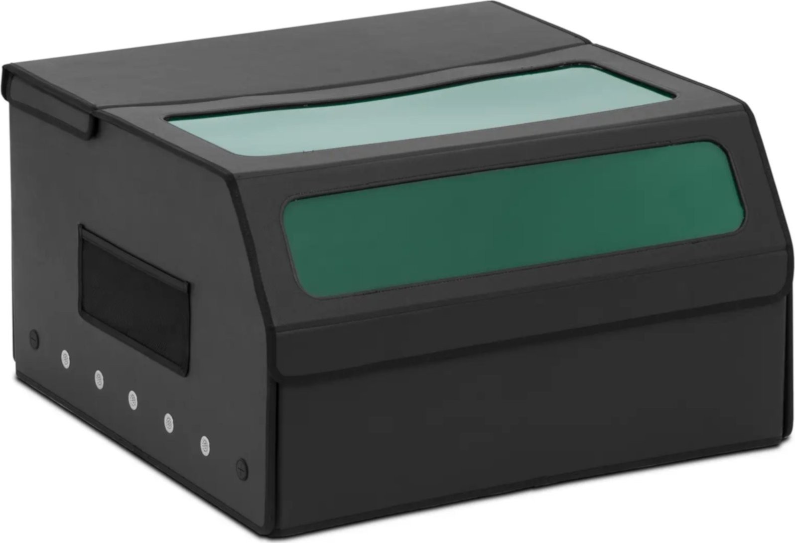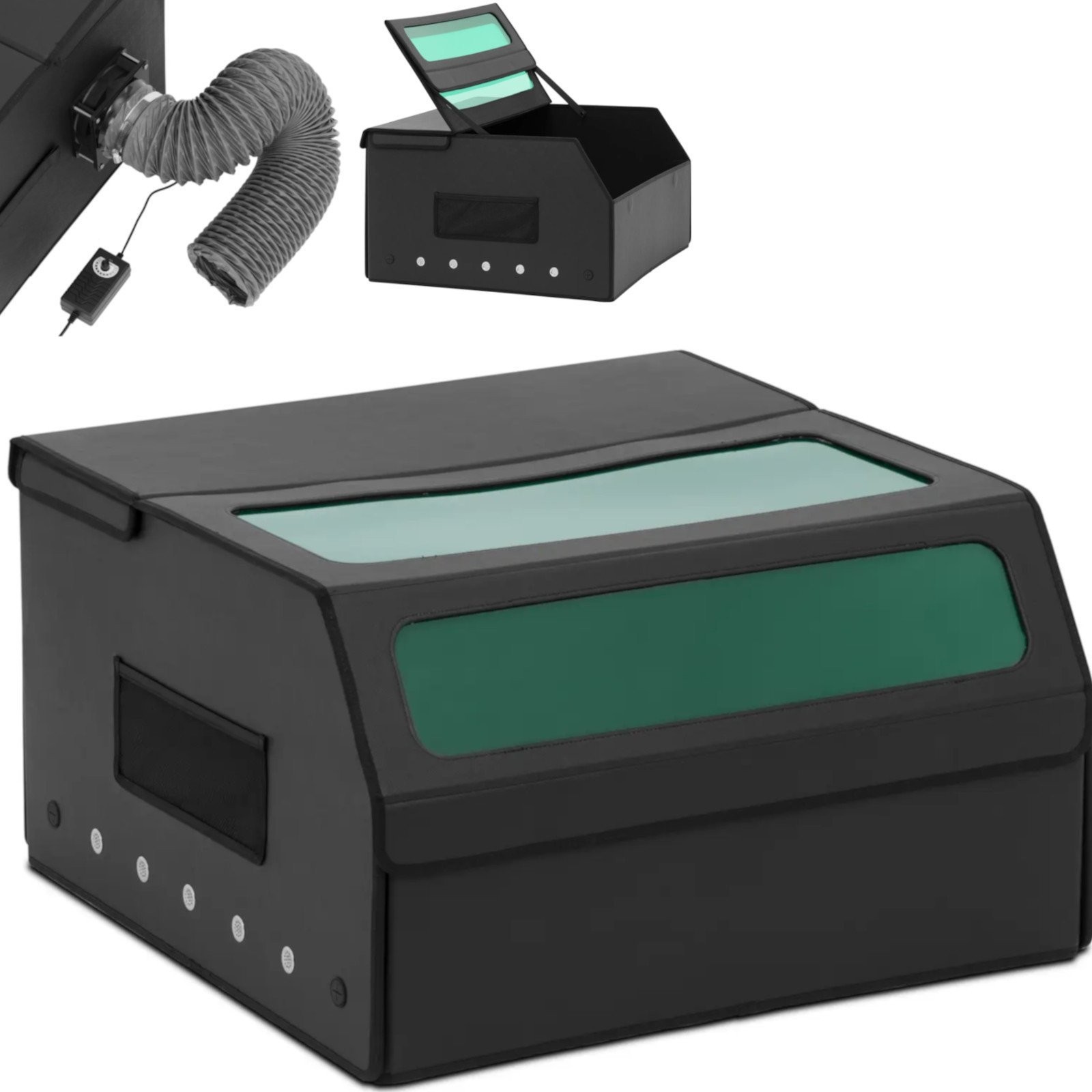 Die Abdeckung der Marke Steinberg Systems schützt die Graviermaschine vor übermäßiger Rauchentwicklung und schädlichen Umwelteinflüssen. Dank ihr verläuft der Gravurvorgang wesentlich reibungsloser, und das Gerät erzielt stets beste Ergebnisse. Gleichzeitig ermöglicht die Abdeckung eine bequeme Kontrolle des Arbeitsfortschritts, ohne die Augen zu gefährden. Die Abdeckung der Graviermaschine verfügt über zwei PVC-Fenster , die die Auswirkungen der Laserstrahlung auf die Umgebung reduzieren. Sie sind so transparent, dass das Innere deutlich zu sehen ist. Die abgeschrägte Konstruktion erleichtert die Sicht auf die Graviermaschine von oben und von der Seite, sodass Sie den Arbeitsfortschritt der Maschine kontrollieren können. Das Gehäuse besteht aus einer robusten, feuerfesten Mischung aus Wabenplatte und Oxford-Gewebe, deren Außenwände einen geschlossenen Innenraum bilden. Die Schutzabdeckung der Graviermaschine verfügt über ein Absaugsystem für den Rauch , der während des Betriebs der Maschine entsteht. Ein Ventilator und ein 1,9 m langer Schlauch entfernen Staubpartikel und Rauch kontrolliert aus dem Inneren. Dies verbessert die Sicht im Inneren des Gehäuses und schützt vor schädlichen Dämpfen. Die zusammenklappbare Konstruktion der Abdeckung erleichtert den Transport und die Lagerung. Die Abmessungen entsprechen der Lasergravurmaschine SBS-LEM-200X (Herstellercode: 10031290). Die Abdeckung kann auch mit kleineren Modellen verwendet werden.
