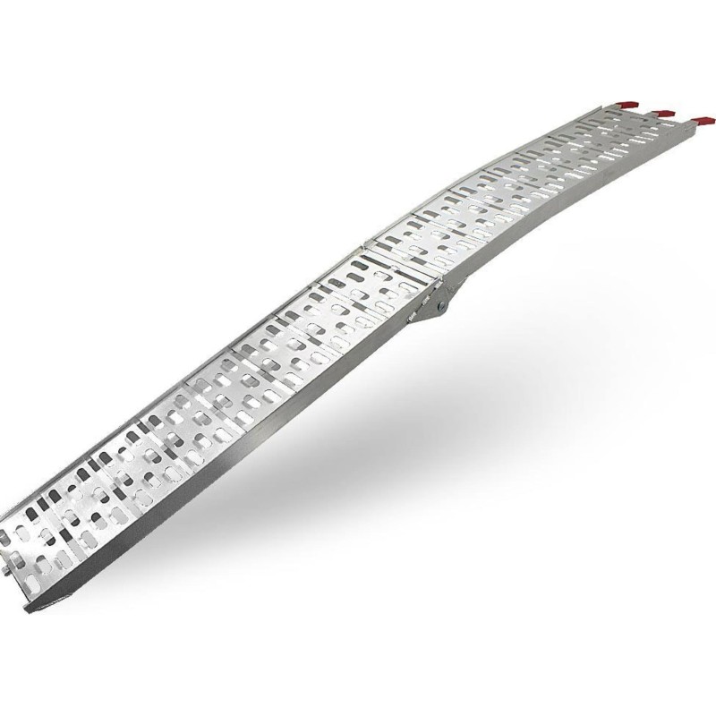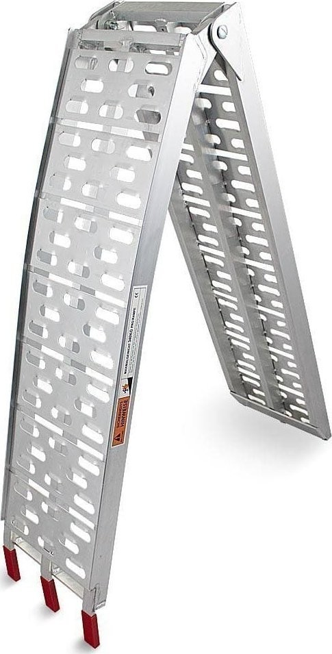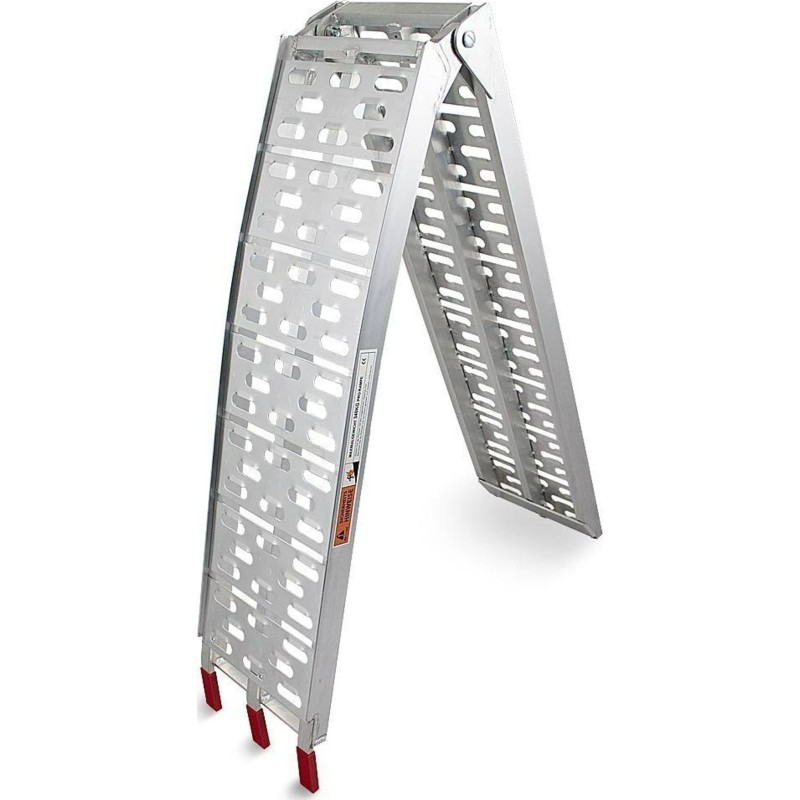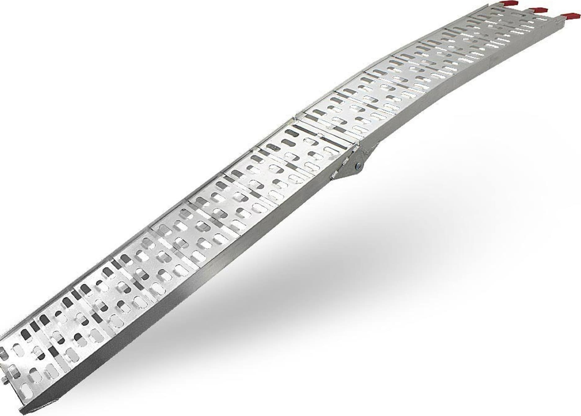 Rampe mit einer Tragkraft von 340 kg. Sehr robust und einfach zu bedienen. Ideal zum Verladen von Motorrädern, Rasenmähern, Rollern, Baumaschinen usw. Die Rampe ist zusammenklappbar, was Transport und Lagerung erleichtert.