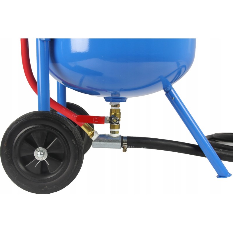 Die Sandstrahlmaschine ist mit Gummirädern für den Transport sowie praktischen Griffen ausgestattet, die das Bewegen erleichtern und den Arbeitskomfort des Bedieners erhöhen.