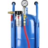 Am Ende des Einlassschlauchs des Sandstrahlers befindet sich oben am Behälter gut sichtbar ein Manometer mit Wasserabscheider.