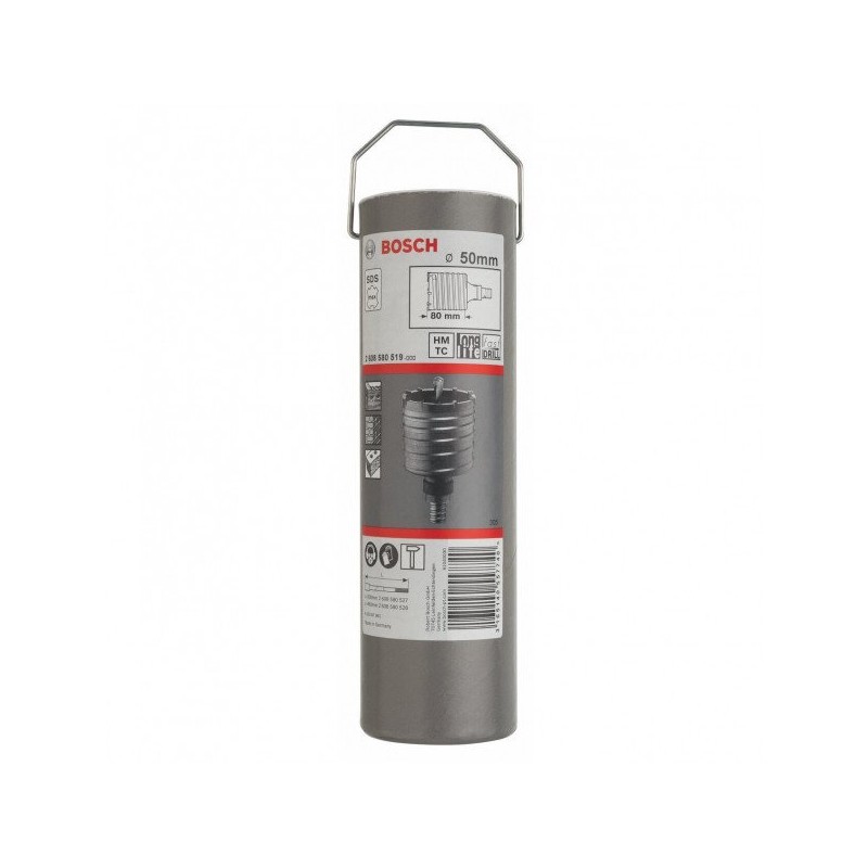 Die Bosch SDS-max-9-Bohrkrone ist ein Werkzeug, das speziell für die professionelle Bearbeitung von Beton, Mauerwerk und Kalksandstein entwickelt wurde. Mit einem Durchmesser von 50 mm und einer Arbeitslänge von 80 mm ist sie das perfekte Zubehör für alle Schlagbohrhämmer mit SDS-max-Aufnahme. Sie besteht aus feinkörnigem Hartmetall und gewährleistet eine lange Lebensdauer sowie hohe Festigkeit, was sie zu einem unschätzbaren Werkzeug für Fachleute macht.