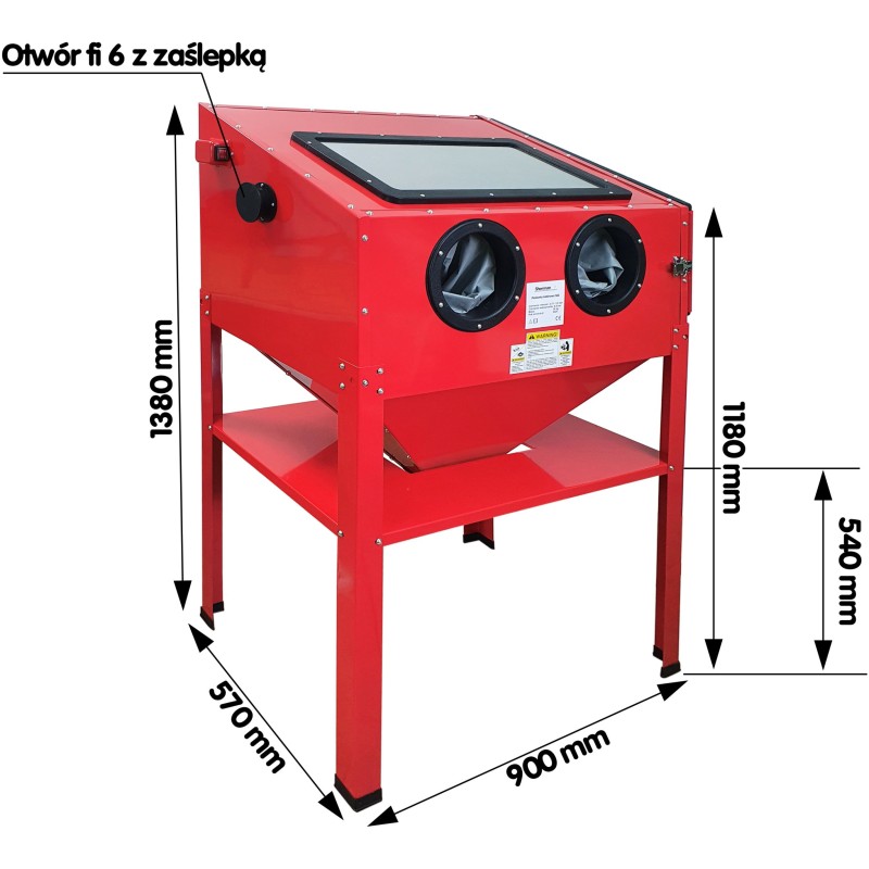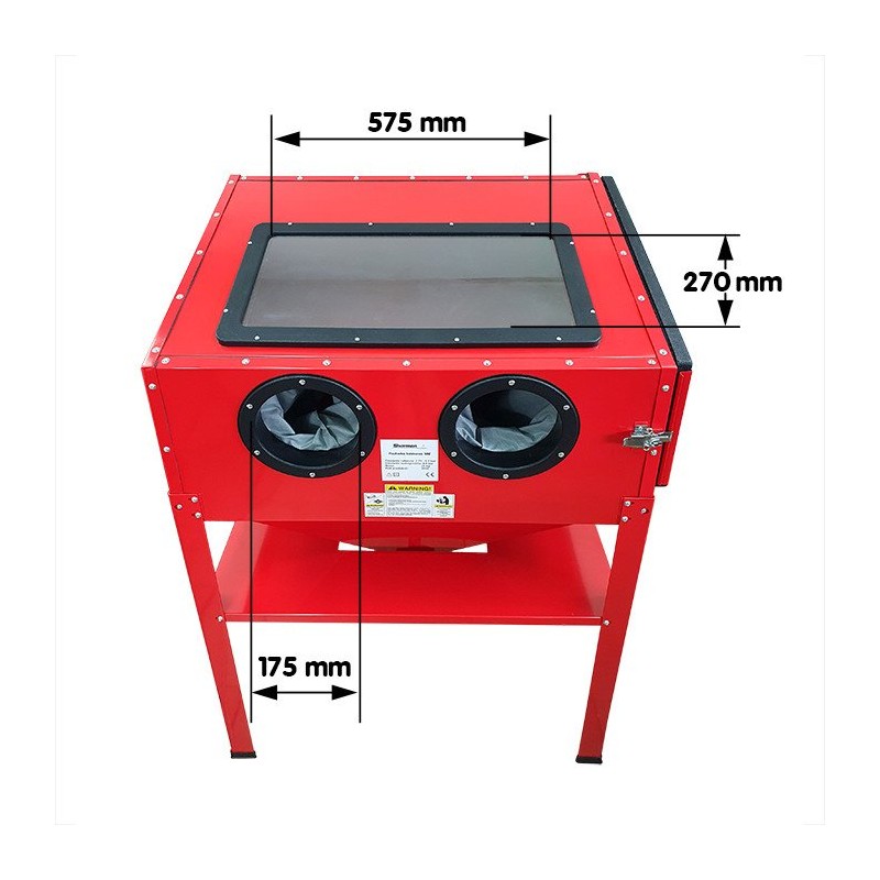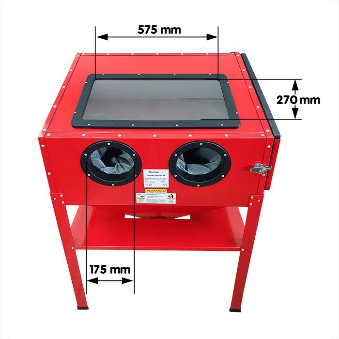 • Abmessungen der Sandstrahlkammer (H x B x T): 560 x 860 x 560 mm