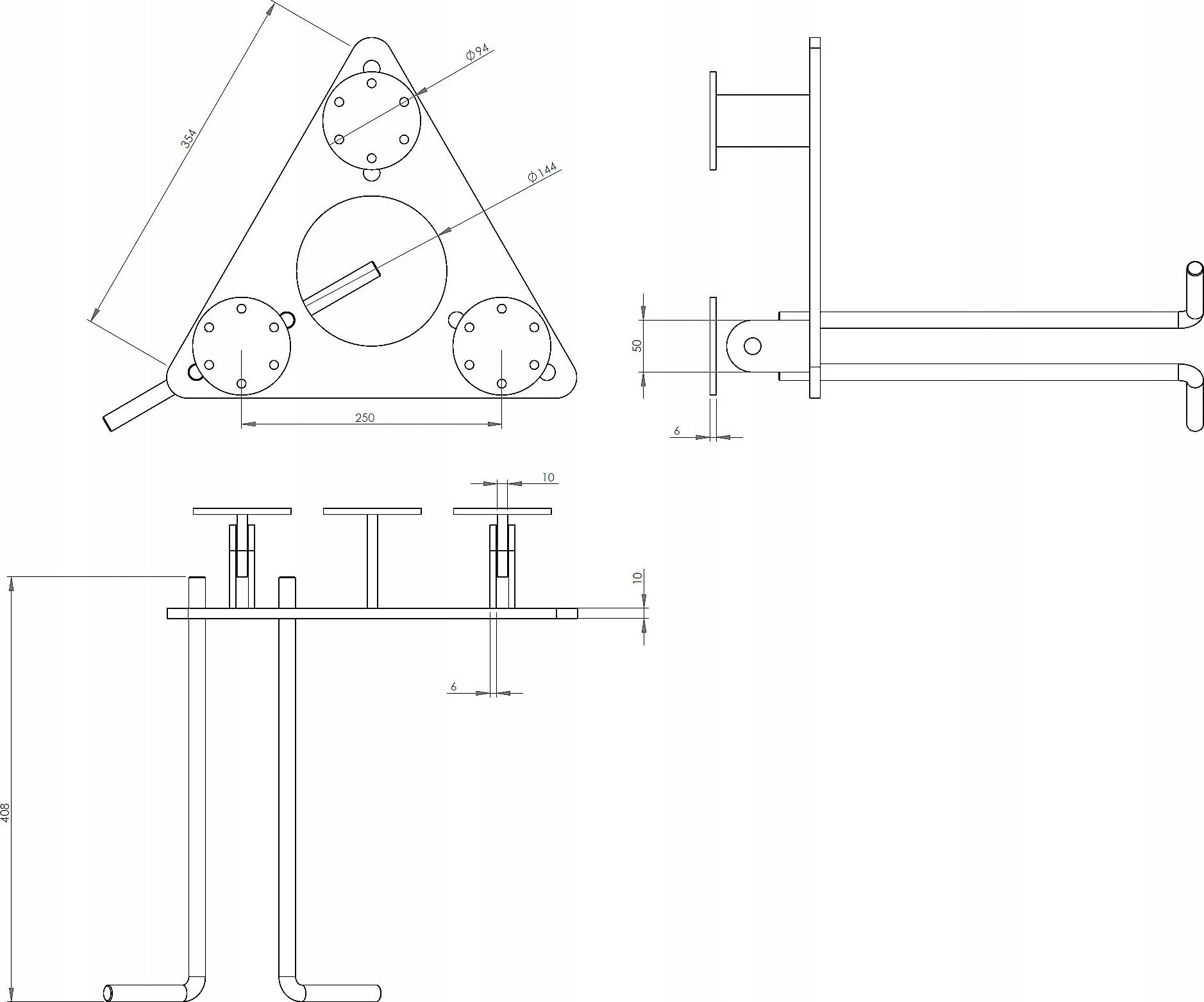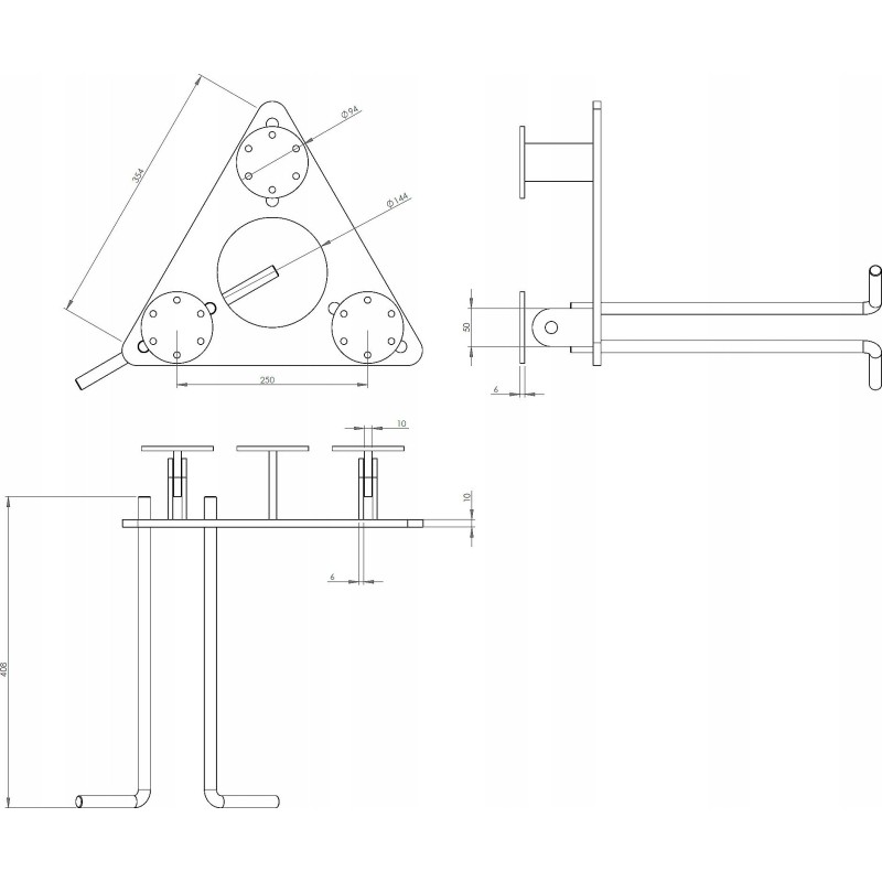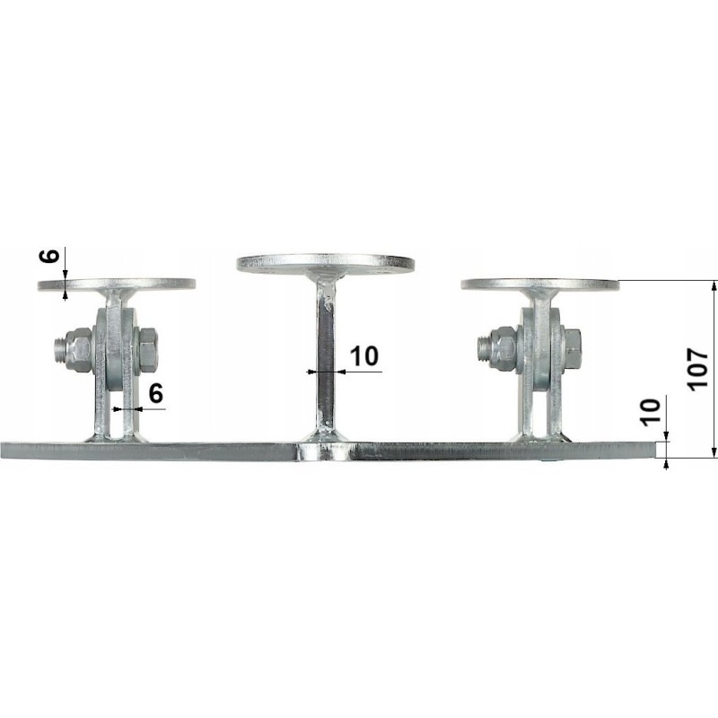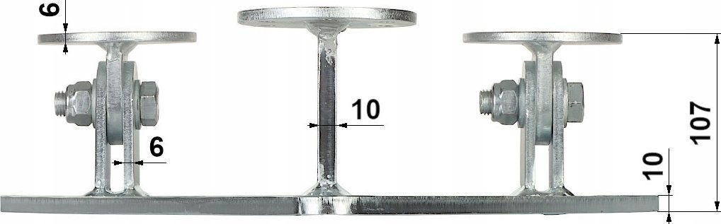 Material: Stahl; Besondere Merkmale: Die Konstruktion ermöglicht eine Neigung des Mastes um bis zu 90° zur Vertikalen, Blechdicke: 10 mm, Verstärkte Scharniere;