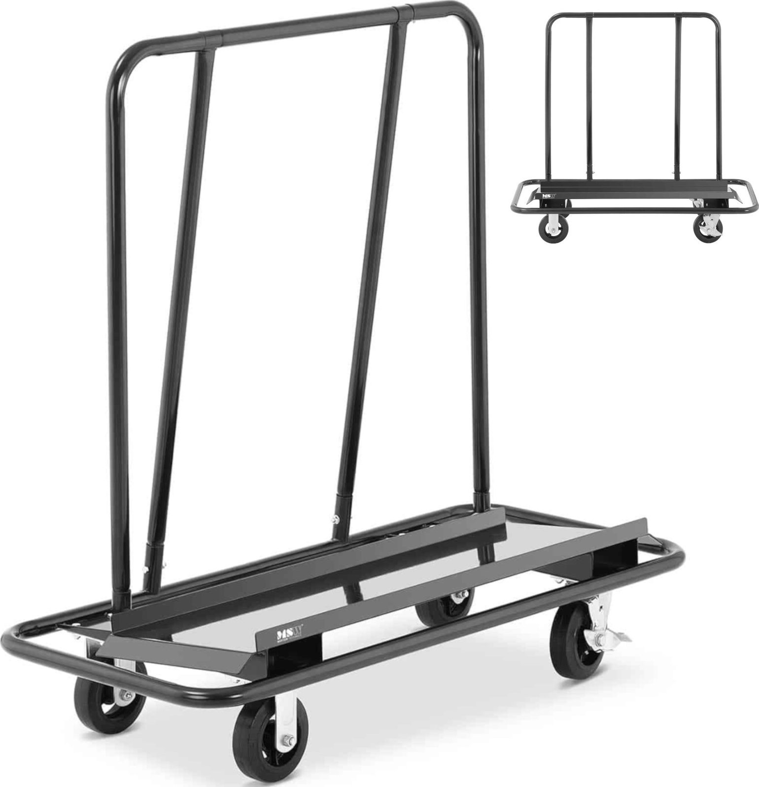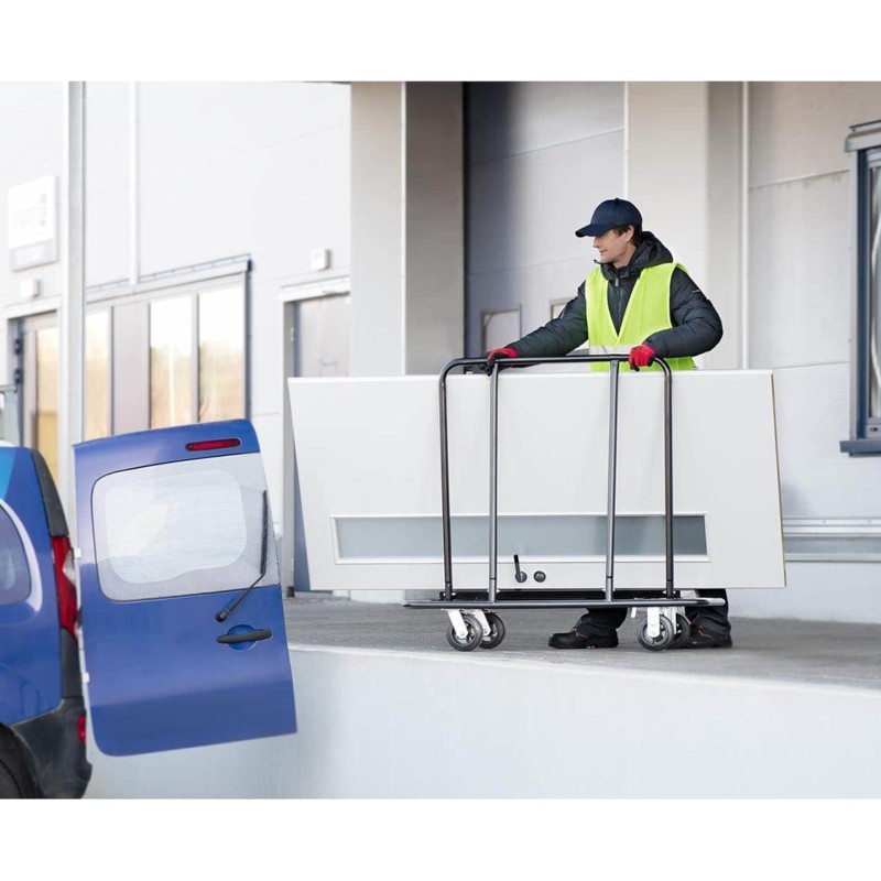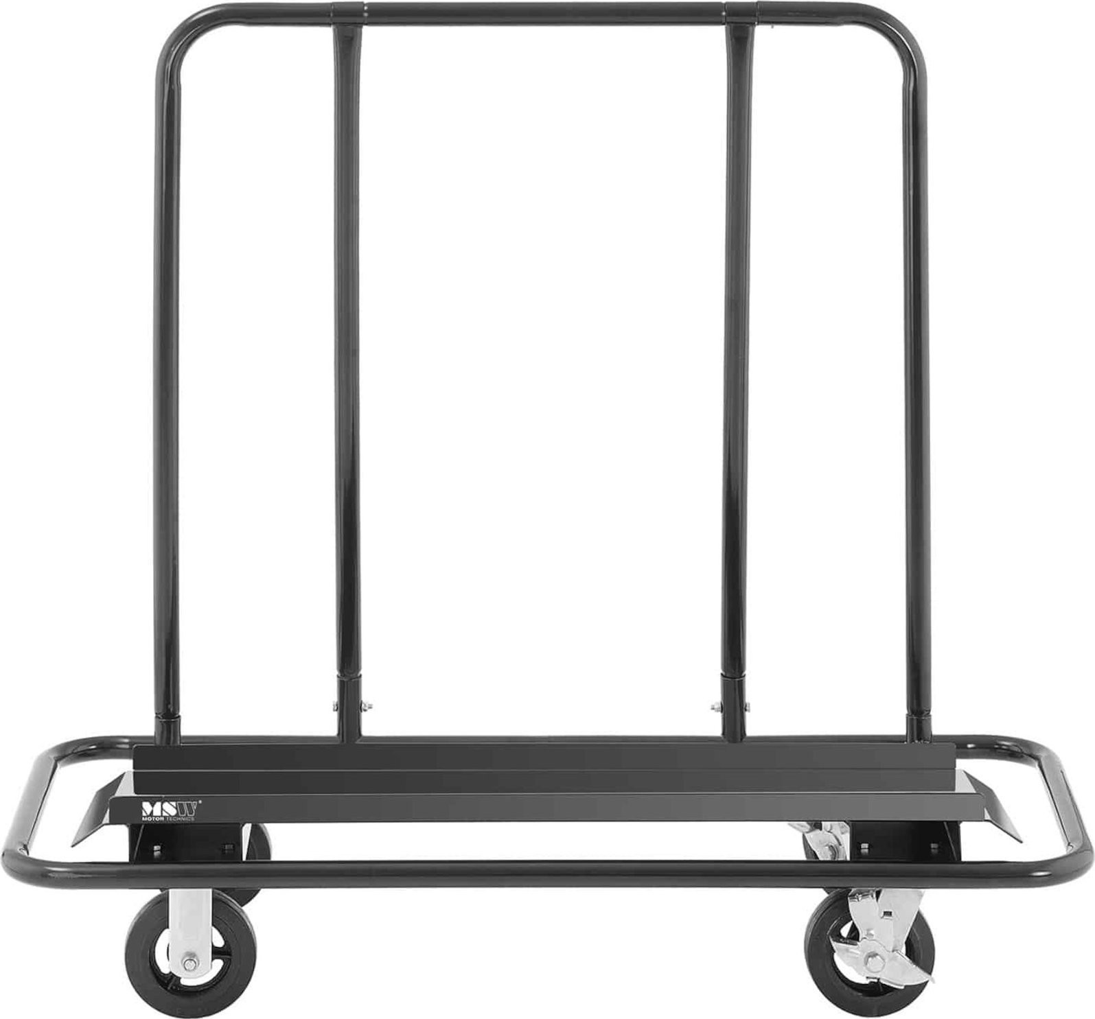 Der Transportwagen der Marke MSW eignet sich ideal für Lager, Möbelgeschäfte, Großhandelsbetriebe oder Baustellen. Er ist hervorragend für den Transport von Gipskartonplatten, Brettern, Wandverkleidungen, Möbeln, Paketen usw. geeignet. Er zeichnet sich durch eine offene, einfache Konstruktion aus, die die Handhabung erleichtert. Die Tragkraft des Wagens beträgt 500 kg . Dank der geneigten Ladefläche rutschen die Produkte nicht herunter. Der Rahmen ist robust und hält intensiver Beanspruchung stand. Große Gummiräder mit einem Durchmesser von 15 cm (2 davon sind lenkbar) sorgen für Mobilität und erleichtern das Manövrieren in engen Räumen.