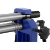 Das Gerät verfügt über drei Metallrollen, mit denen sich Bleche biegen, zu Kegeln oder Zylindern formen lassen. Mithilfe der Rillen kann Draht zu Bögen oder Kreisen gewickelt werden. Die Walzen sind für die Bearbeitung von Material mit einer maximalen Breite von 610 mm und einer Dicke von 0,8 mm ausgelegt. Eine Handkurbel ermöglicht das Drehen der Walze beim Einlegen des Blechbogens in die Walzmaschine. Ein rutschfester Gummigriff sorgt für komfortables Arbeiten. Mit den Einstellrädern lässt sich der Abstand zwischen den Walzen an die Materialstärke anpassen. Die obere Walze ermöglicht das schnelle Entnehmen des fertigen Elements und erleichtert die Wartung. Das Gerät kann dank der Bohrungen im Sockel am Untergrund befestigt werden. Bei Weichstahl ist Flachwalzen möglich, wodurch ein abgeflachtes Blech oder ein Blech mit geringfügig reduzierter Dicke entsteht. Die Walzmaschine eignet sich auch zur Herstellung von Bögen mit konstantem Radius und Zylindern. Die maximale Materialstärke beträgt 0,8 mm. Dank der Rillen an den Walzen kann die Blechwalzmaschine auch Stangen, Draht oder kleine Rohre mit einem Durchmesser von 2,4; 3,2 und 4 mm formen.