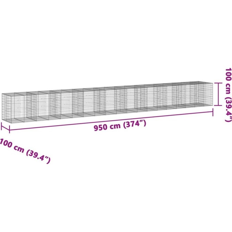 vidaXL vidaXL Gabionenkorb mit Deckel, 950 x 100 x 100 cm, verzinktes Eisen