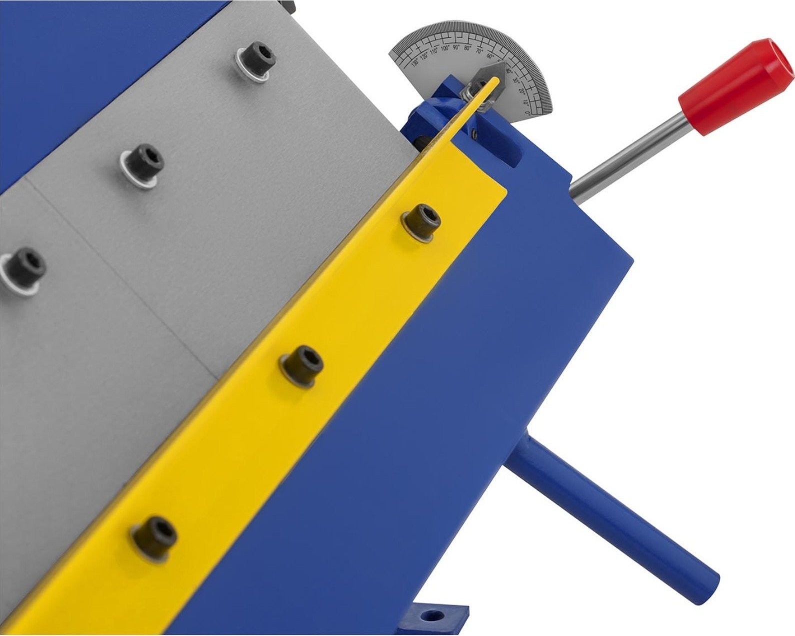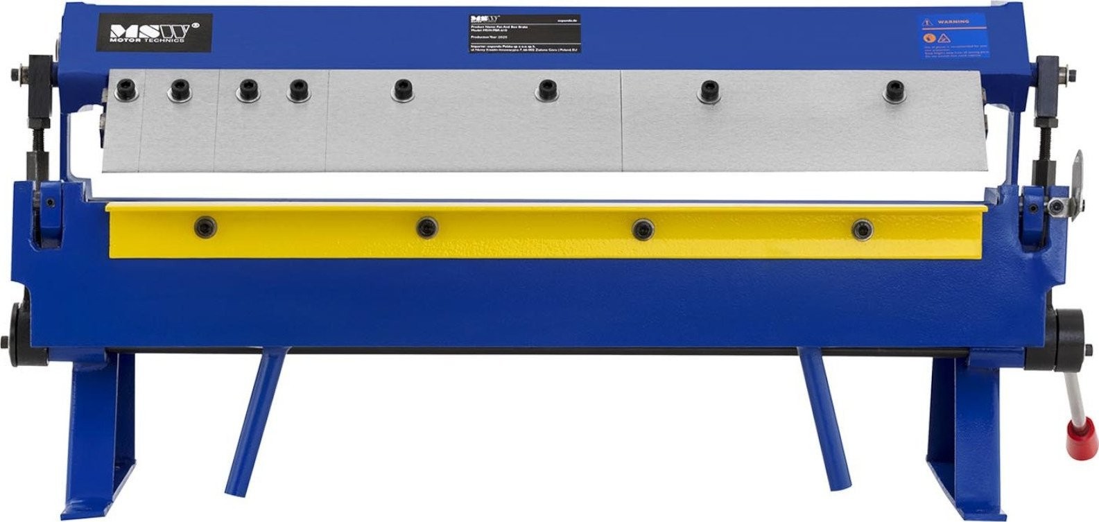 Die Biegemaschine der Marke MSW eignet sich für Werkstätten, Fabriken, Modellbau-, Karosserie- und andere Betriebe, insbesondere bei der Karosserierestaurierung sowie beim Bau von Einfahrtstoren oder Türen. Das Gerät verarbeitet Bleche mit einer maximalen Breite von 610 mm und einer Dicke von 1 mm . Der Biegewinkel beträgt 0–135 °. Die Biegemaschine ist mit Segmenten von 1'', 2'', 3'', 8'' und 10'' (26,4 mm, 51 mm, 79 mm, 203 mm, 254 mm) ausgestattet. Die Biegehöhe beträgt 70 mm , die Öffnungsweite reicht bis zu 20 mm . Die Bedienung der Maschine erfolgt manuell. Der Hebel verfügt über einen rutschfesten Griff . Im Sockel befinden sich 8- mm-Befestigungslöcher zur Verankerung des Geräts am Untergrund.