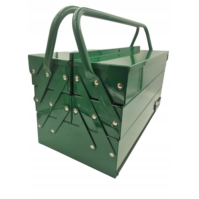 Der Werkzeugkasten wurde aus dickem, pulverbeschichtetem Stahlblech gefertigt, was ihm eine hohe Widerstandsfähigkeit gegen Beschädigungen verleiht. Dank der soliden Konstruktion sind die Werkzeuge stets sicher und leicht zugänglich, was den Arbeitskomfort erhöht.