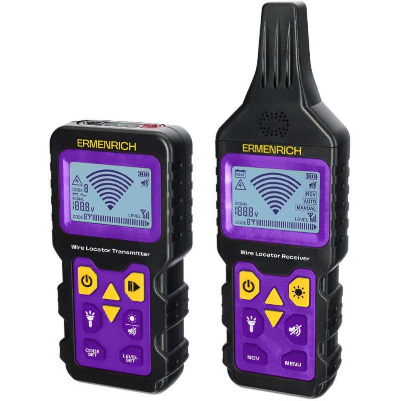Der Ermenrich Ping SM150-Leitungsortungsgerät umfasst einen Sender, einen Empfänger und zusätzliches Zubehör. Es wird zur Überprüfung und Wartung von elektrischen Leitungen und Netzen sowie von Wasser- und Gasleitungen verwendet, die im Boden verlegt sind oder sich in Wänden oder Fundamenten von Gebäuden befinden. Das Gerät ortet Sicherungen, verdeckte Leitungen und Steckdosen sowie Verteilerkästen, die bei Renovierungsarbeiten versehentlich mit Gips überdeckt wurden.