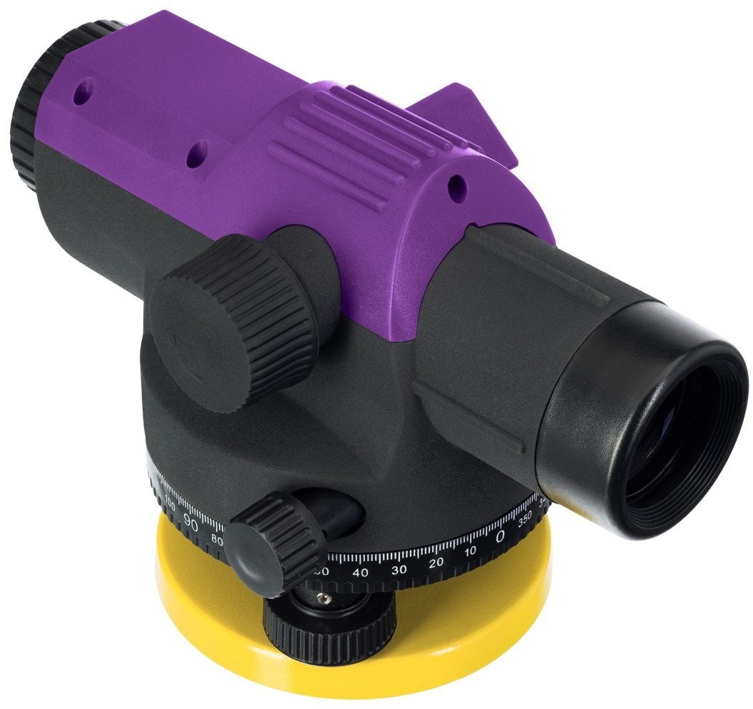 Das optische System des Nivelliergeräts verfügt über eine 32-fache Vergrößerung. Die Reichweite beträgt 120 Meter – bei dieser Entfernung ist auf der Libellenspitze eine Skala in Form des Buchstabens E sichtbar. Die Millimeterskala ist bei Entfernungen bis zu 50 Metern sichtbar. Das Gerät ist nicht wetterfest. Es ist spritzwasser- und staubgeschützt. Das Gerät ist mit Standardstativen mit 5/8"-Gewinde kompatibel und wird mit den erforderlichen Einstellwerkzeugen geliefert. Optische