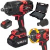 Der leistungsstärkste Akku-Schlagschrauber im YATO-Sortiment. Sein bürstenloser Motor liefert ein Drehmoment von 2400 Nm, was den Radwechsel an Lkw und Kleinbussen sowie Arbeiten an Bau- und Landmaschinen ermöglicht. Der Schrauber eignet sich für die Montage von Konstruktionen, Stahlhallen, Energieabsorbierenden Leitplanken und Lichtmasten. Die Spindelbremse schützt den Anwender, falls der Schrauber blockiert. Anwender werden die robuste Bauweise, die gut aufeinander abgestimmten Komponenten und die ergonomische Handhabung zu schätzen wissen. Im Lieferumfang ist ein 3/4-Zoll-auf-1/2-Zoll-Adapter enthalten.