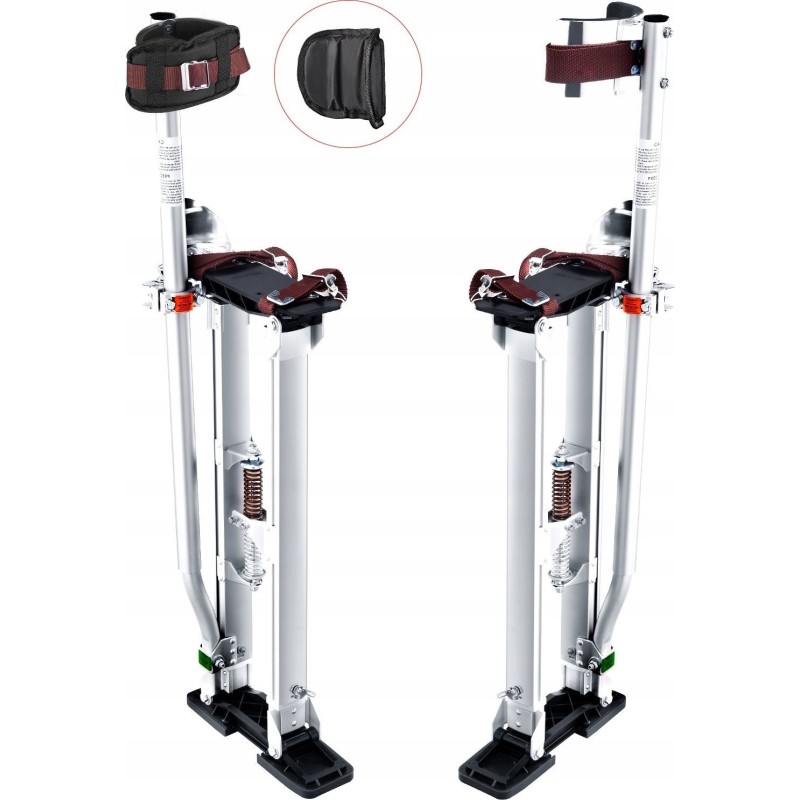 Neben den robusten Nylonriemen, die für Sicherheit sorgen, verfügen die Stelzen aus Gipskartonplatten über zwei stoßdämpfende Federn, die dabei helfen, beim Gehen das Gleichgewicht zu halten, und ein bequemes, selbstständiges Stehen ermöglichen. Die Stelzen machen Ihre nächsten großen Projekte einfacher. Gummifüße an der Unterseite erhöhen die Reibung mit dem Boden und verhindern so ein Verrutschen und Kratzer.