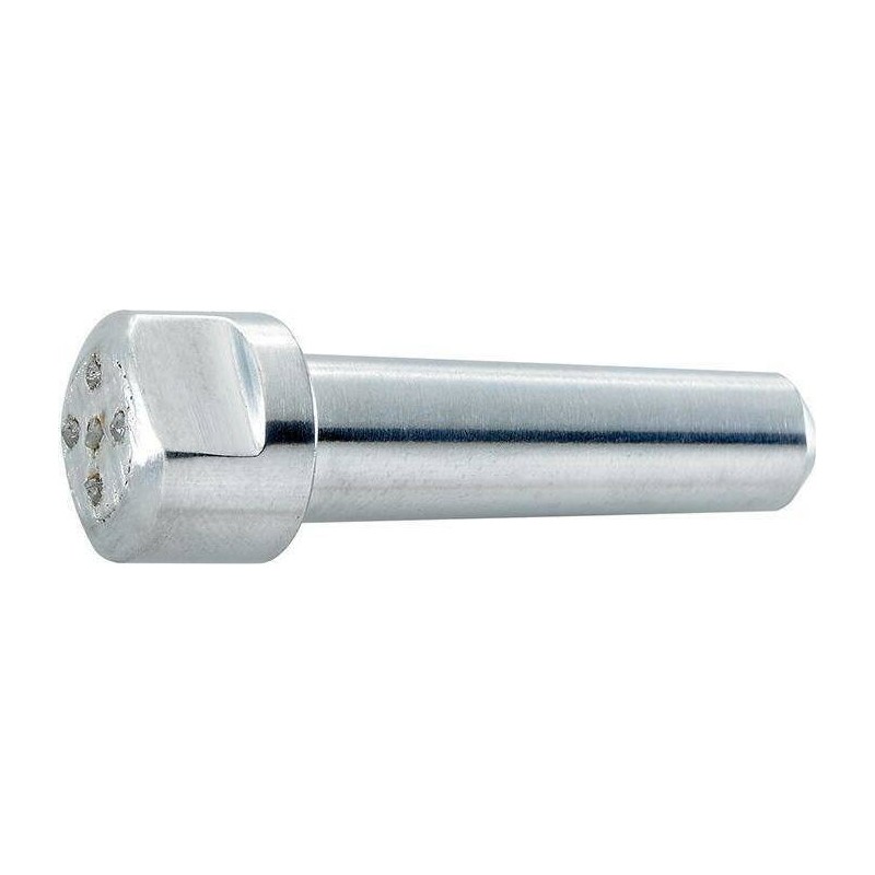 Mehrfach-Diamantabrichter Ausführung: 5 Diamantsteine, die in einer speziellen, gesinterten Fassung eingefasst sind. Durch die spezielle Art der Einfassung können die Steine bis zum letzten Rest abgenutzt werden. Anwendung: Der Mehrdiamant-Abrichtwerkzeug ist ein praktisches Werkzeug zum Grobprofilieren von Schleifscheiben aller Durchmesser bis zu einer Korngröße von 100. Hinweis: Um die Lebensdauer des Abrichtwerkzeugs zu verlängern, ist während des Betriebs für eine kontinuierliche Kühlung zu sorgen. MK 1. Gesamtlänge 57 mm.