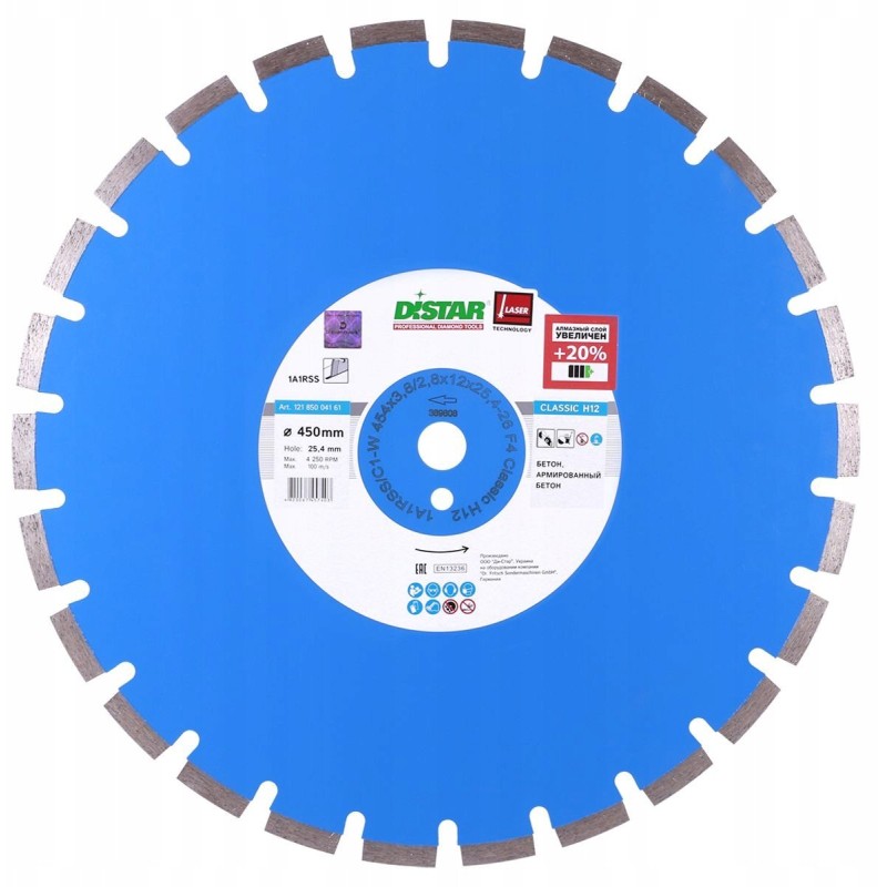 Die Diamantscheibe DISTAR DIAMOND BLADE CLASSIC H12 mit einem Durchmesser von 450 mm ist ein zuverlässiges Werkzeug, das hohe Leistung und präzise Schnitte bei einer Vielzahl von Baumaterialien garantiert. Dank moderner Technologien ist diese Scheibe die perfekte Wahl sowohl für Profis als auch für Heimwerker, die Wert auf Qualität und Arbeitseffizienz legen.