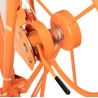 Höhenverstellung des Auslegers zusammen mit der Montageplatte, Einstellung über den Griff am Rad. Bremse zum Arretieren des Auslegers.