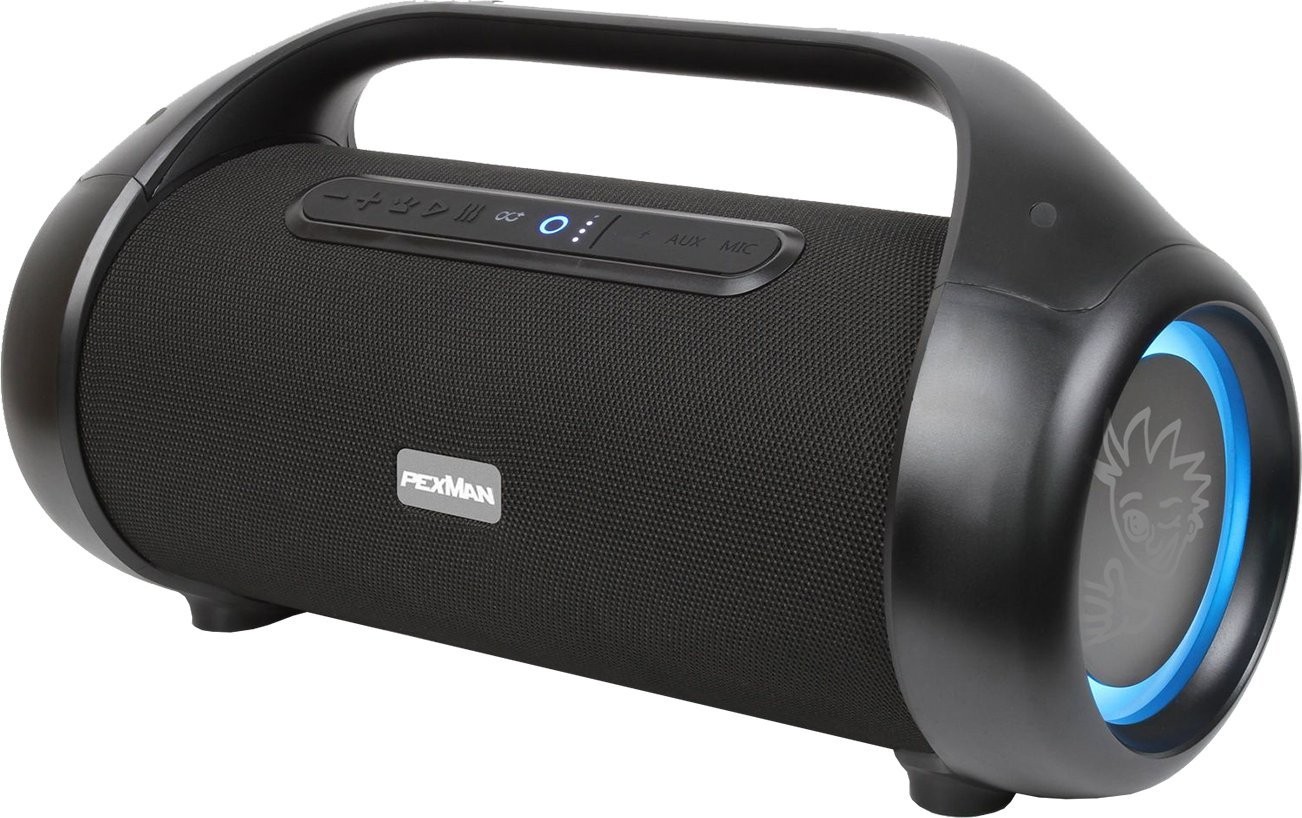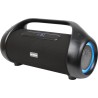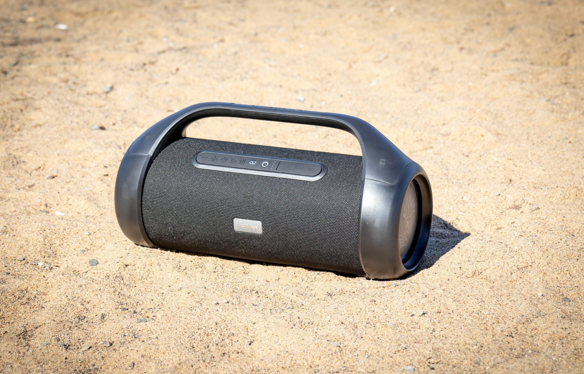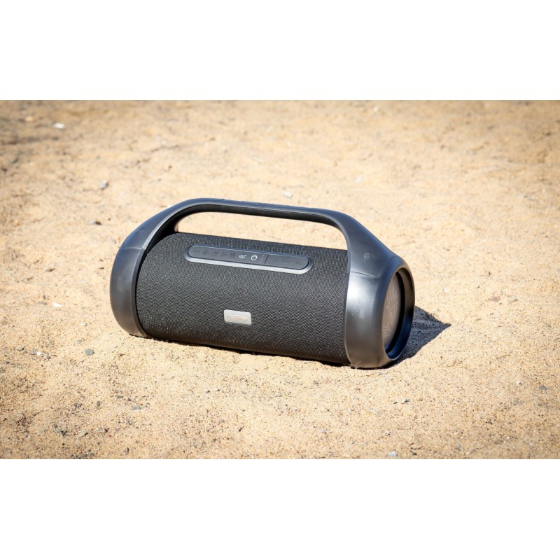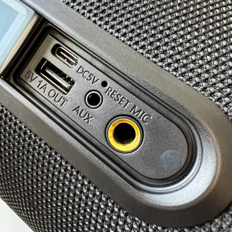 Der Lautsprecher verfügt über eine spezielle Taste für die TWS-Funktion, die eine wirklich kabellose Stereowiedergabe ermöglicht. Darüber hinaus bietet er eine Karaoke-Funktion mit einem Eingang für ein kabelgebundenes Mikrofon, optimierte Unterstützung für die Sprachassistenten Google und Siri sowie ein Mikrofon für freihändiges Telefonieren.