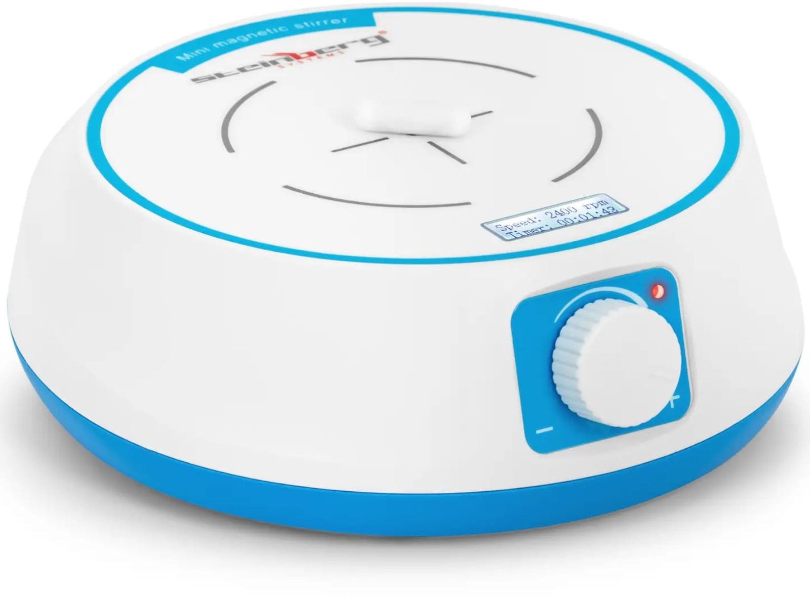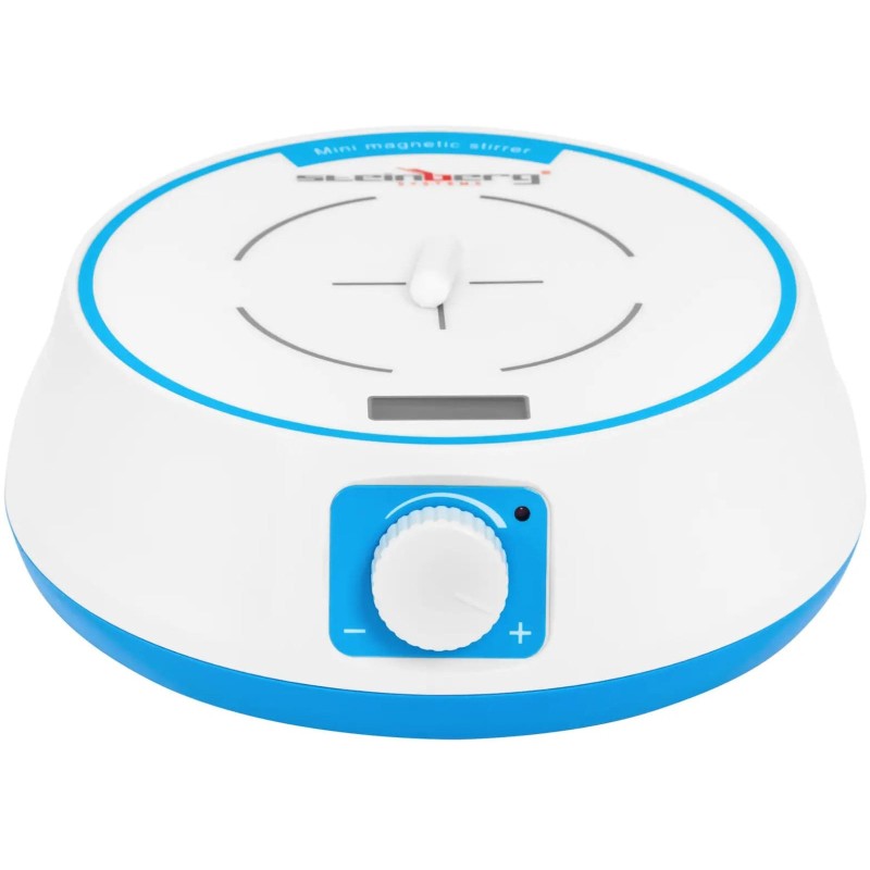 Der Mini-Magnetrührer von Steinberg Systems mischt Flüssigkeiten effizient und schonend. Dank seiner kompakten Bauweise und einfachen Bedienung eignet sich das Gerät ideal für Anwendungen, die ein langes Rühren erfordern. Es eignet sich für den Einsatz in der Chemie, Biologie, wissenschaftlichen Forschung oder zur Herstellung von E-Zigaretten-Flüssigkeiten. Das Gerät ermöglicht das Mischen von bis zu 2 l Flüssigkeiten . Auf der 13,6 cm großen Grundfläche ist ausreichend Platz für geeignete Gefäße. Die Flüssigkeit wird durch ein Rührwerk gemischt, das dank eines bürstenlosen, leisen Motors eine Drehzahl von 0 bis 2400 U/min erreicht. Über einen Drehknopf lässt sich die Intensität stufenlos an die Konsistenz der Flüssigkeit anpassen, und über das LCD-Display kann die Drehzahl kontrolliert werden. Dank des robusten Kunststoffgehäuses (ABS) ist das Gerät besonders stabil und langlebig. Dadurch eignet es sich sowohl für den stationären als auch für den mobilen Einsatz.