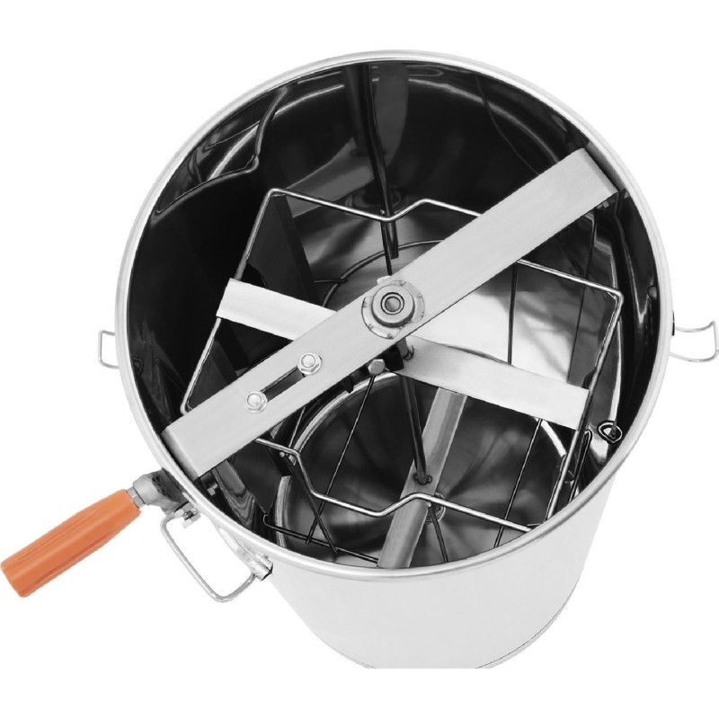 Die Zentrifuge kann gleichzeitig Honig aus 2 Wabenrahmen schleudern. Die Honigschleuder besteht aus Edelstahl und hochwertigem Kunststoff. Das Getriebe ist aus Stahl gefertigt. Das Schleudern erfolgt manuell mittels einer Kurbel.