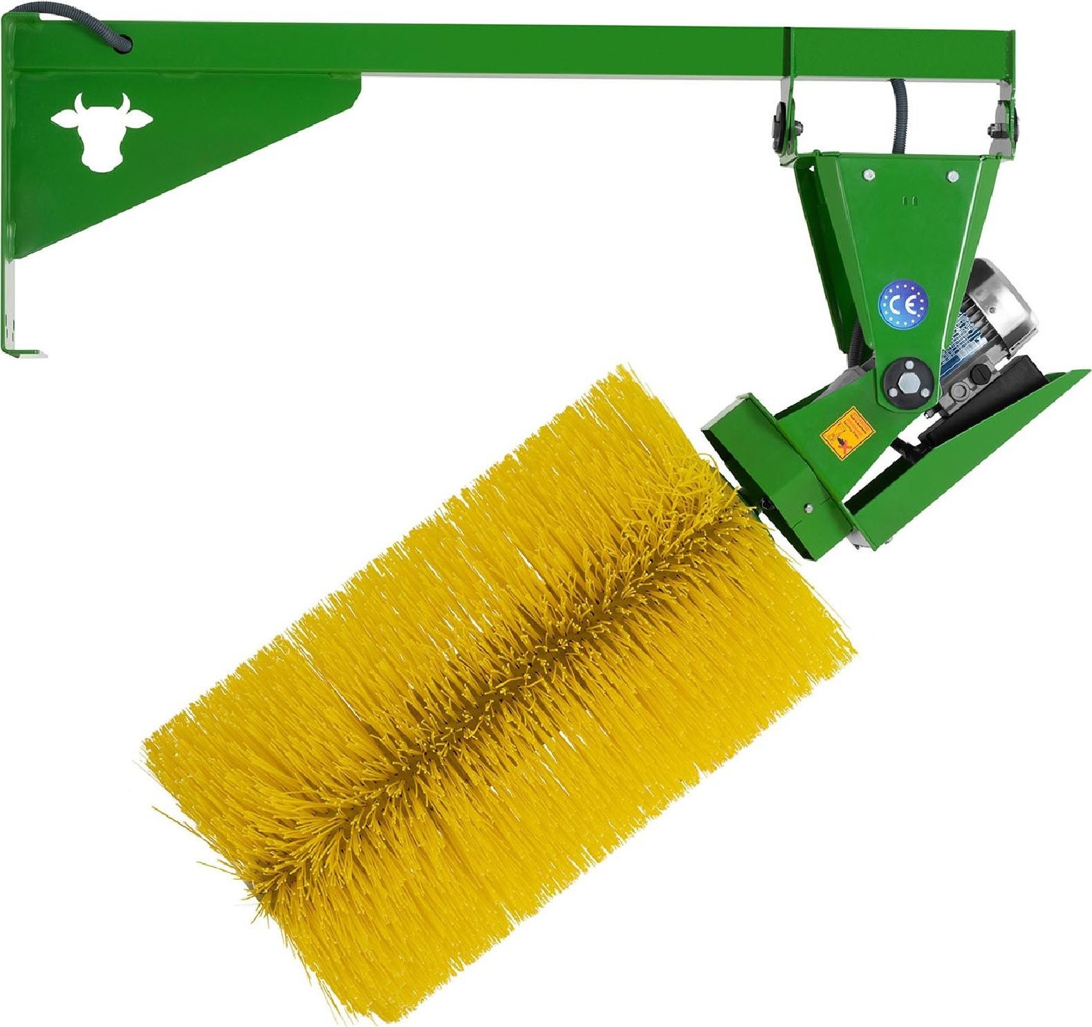 Die durchdachte Konstruktion des Geräts gewährleistet die Sicherheit der Kühe. Die Bürste hat Abmessungen von 46 x 75 cm und dreht sich mit 30 Umdrehungen pro Minute . Die Bürste wird senkrecht an einer Wand oder einem Pfosten befestigt. Das Gerät ist elektronisch gesteuert und hat einen geringen Energieverbrauch von 180 W . Die Bürste dreht sich jedes Mal in eine andere Richtung, um die Lebensdauer der Polypropylenborsten zu verlängern. Eine Schutzlackierung schützt vor UV-Strahlung. Außerdem verfügt sie über eine elektrostatische Pulverbeschichtung.