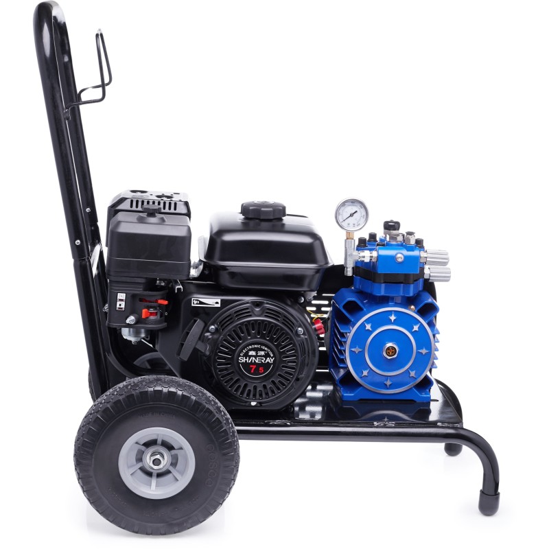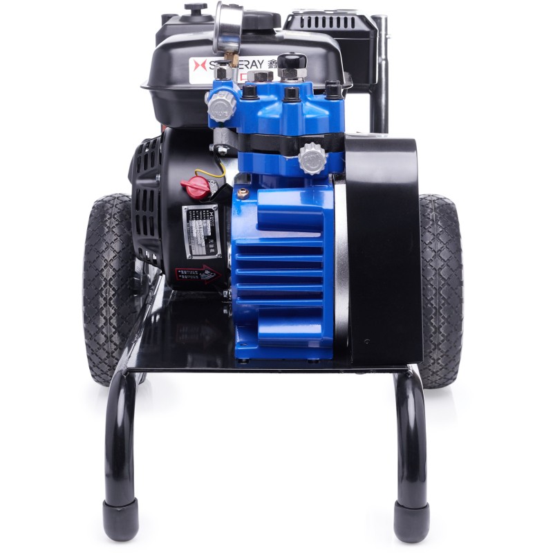 Der 6,5-PS-Motor sorgt für einen stabilen und unterbrechungsfreien Betrieb der Anlage, was bei langwierigen Lackierarbeiten entscheidend ist. Der hohe Arbeitsdruck von bis zu 220 bar ermöglicht ein präzises Auftragen der Farbe und garantiert eine gleichmäßige Oberflächenabdeckung.