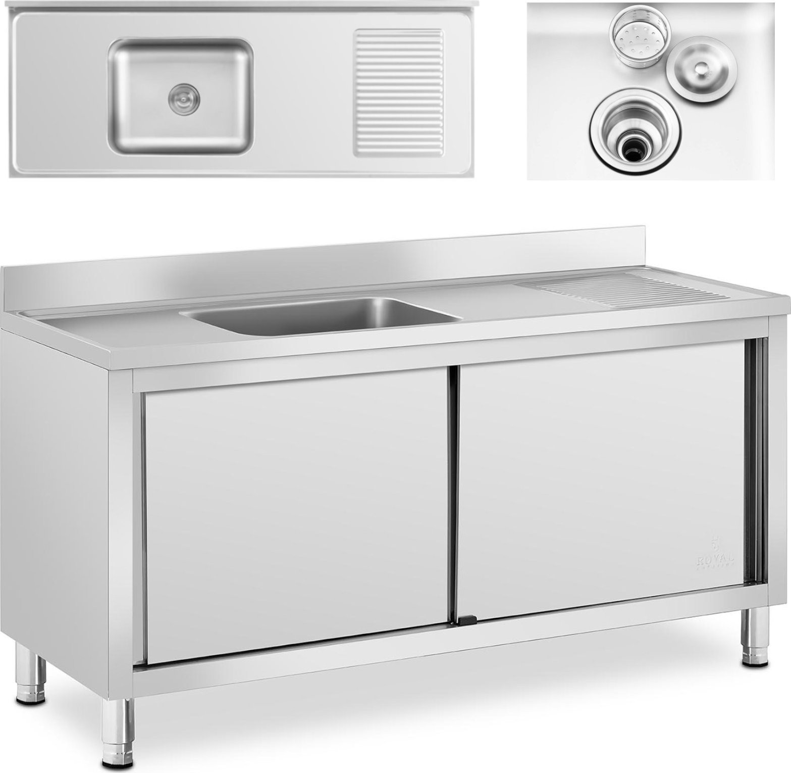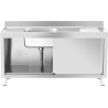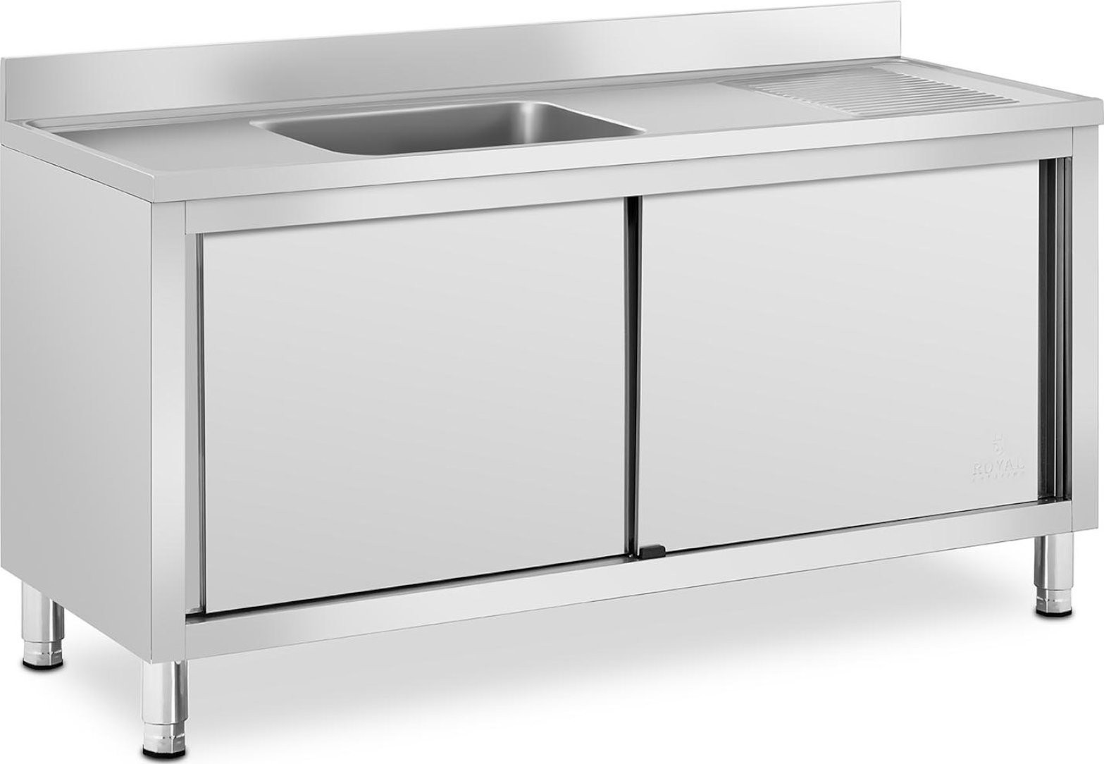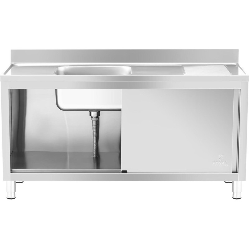 Royal Catering Einbecken-Gastronomie-Spülbecken mit Schrank mit Schiebetüren 160 x 60 x 94,5 cm Gastronomie-Spülbecken