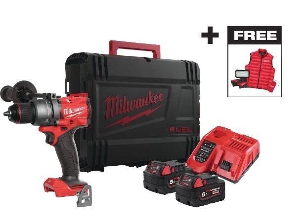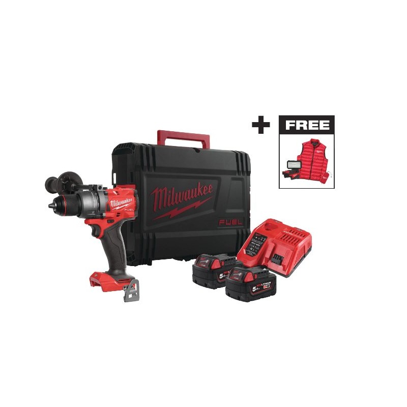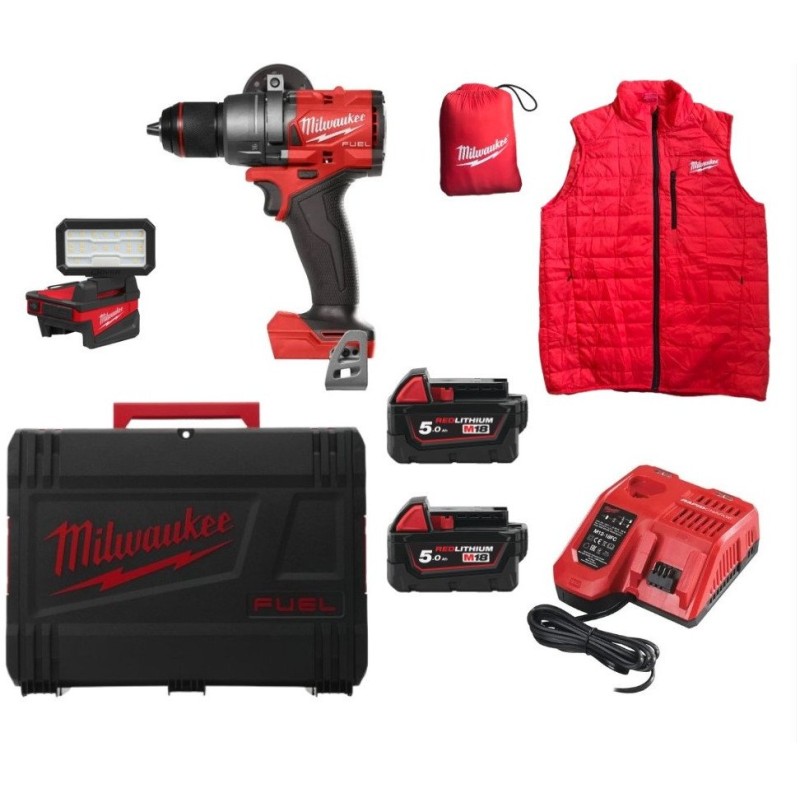 • Lieferumfang: 1 x Bohrmaschine, 2 x 5,0-Ah-Akkus, 1 x Ladegerät, 1 x Zusatzhandgriff, 1 x Transportkoffer