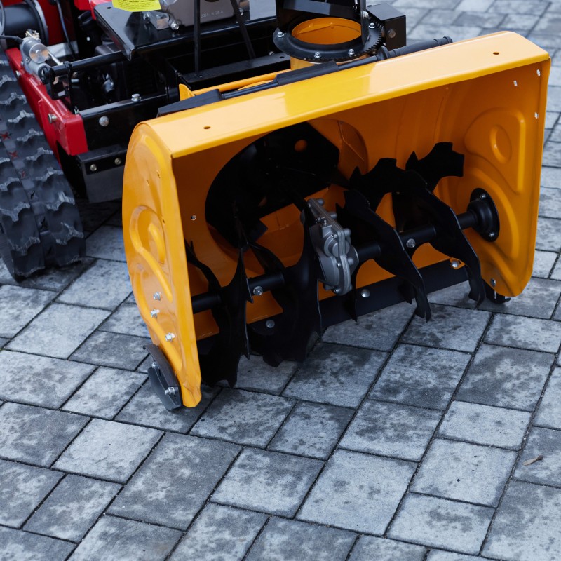 Der Rasenmäher ist mit einem einstellbaren Schneeauswurf ausgestattet, was eine präzise Schneeräumung ermöglicht. So kann der Benutzer die Richtung und Reichweite des Schneeauswurfs an seine Bedürfnisse anpassen.