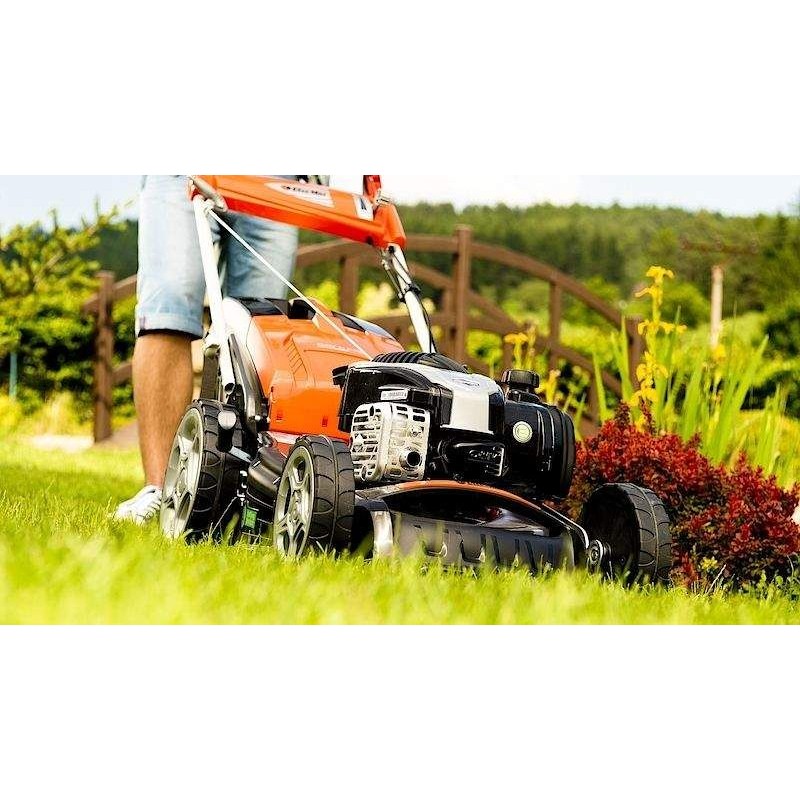 Der Benzin-Rasenmäher OLEO-MAC MAX 48 TK ALLROAD ALU mit Aluminiumgehäuse und Antrieb ist ein hervorragendes Gerät zum Mähen von Rasen in sehr großen Gärten rund um Wohnblocks und auf Grundstücken. Das Gerät ist mit allen notwendigen Funktionen ausgestattet. Das vorgestellte Modell zeichnet sich zudem durch ein hervorragendes Preis-Leistungs-Verhältnis aus. Der Rasenmäher ist für professionelle Anwender bestimmt, die sich mit der Pflege von Grünflächen befassen und auf großen Flächen arbeiten. Besonderer Wert wurde auf ergonomische und funktionale Konstruktionslösungen gelegt. Für große Gärten (ca. 2200 Quadratmeter); erhältlich mit Aluminiumgehäuse.