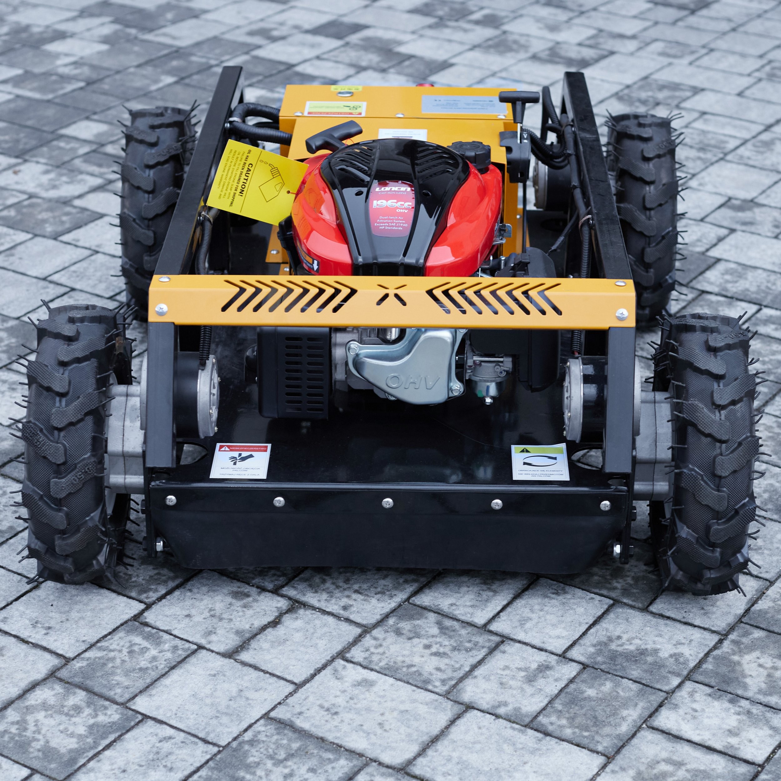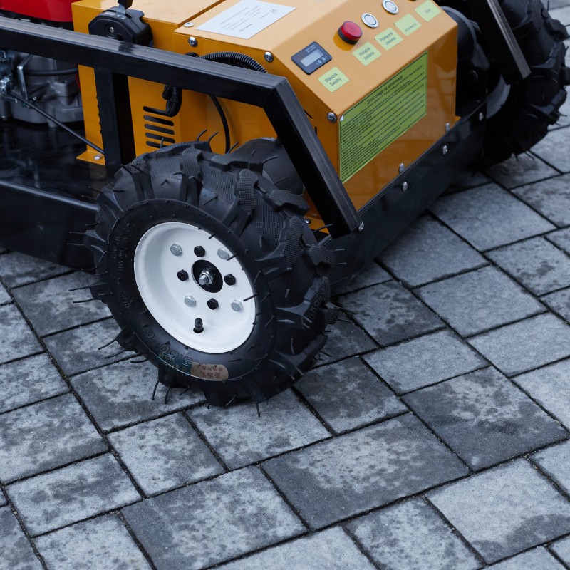 Das innovative Fernsteuerungssystem ermöglicht eine präzise Steuerung des Mähers aus einer Entfernung von bis zu 200 Metern. Dies erhöht den Arbeitskomfort erheblich, insbesondere unter schwierigen Geländebedingungen, und gewährleistet gleichzeitig die Sicherheit des Benutzers.