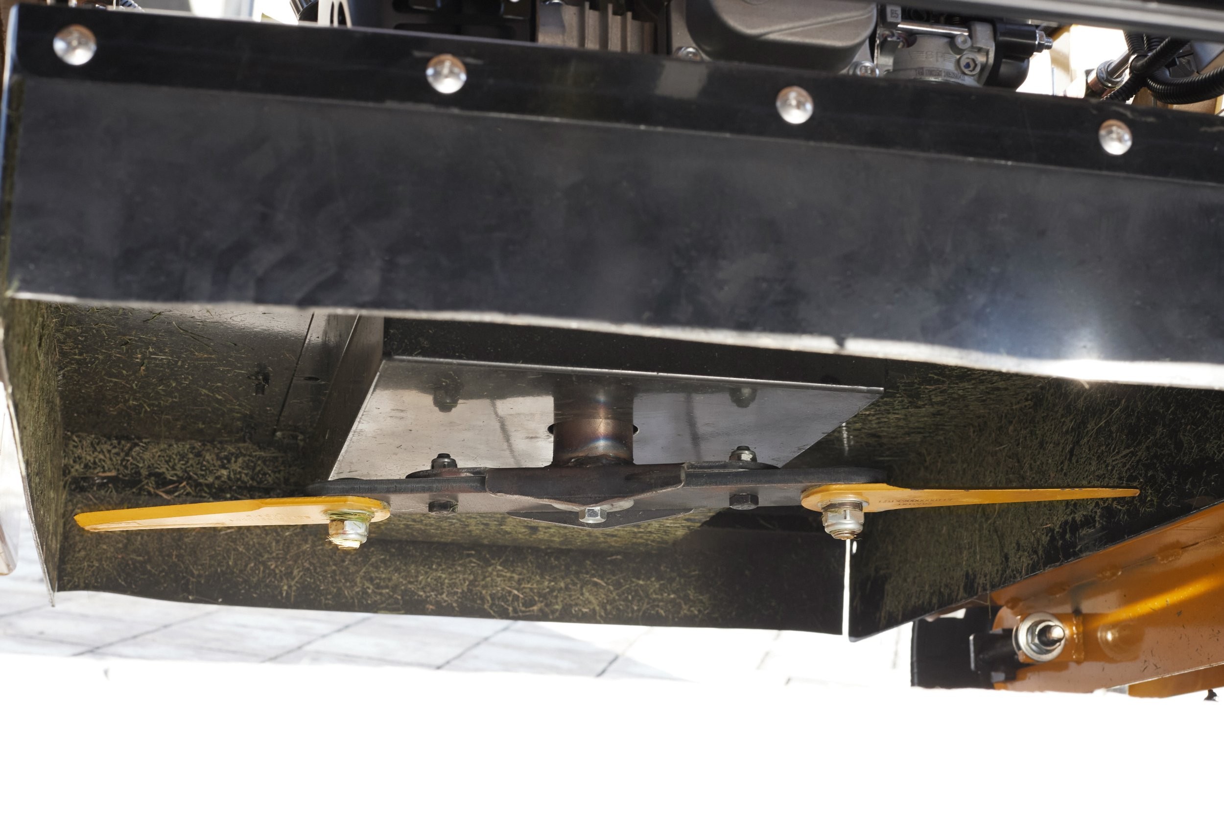 Das Gerät hat kompakte Abmessungen und ein Gewicht von 130 kg, was für Stabilität während des Betriebs sorgt und die Lagerung erleichtert. Der aus robusten Materialien gefertigte Rasenmäher garantiert Langlebigkeit auch unter schwierigen Bedingungen.