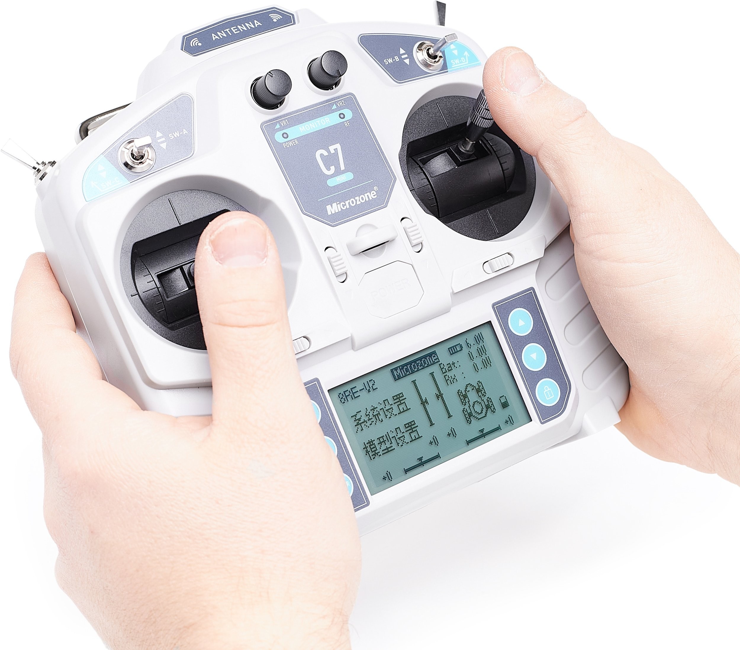 • Fernbedienung: RC-Fernbedienung mit LCD-Display Microzone C7 Mini (Stromversorgung: 4xAA)