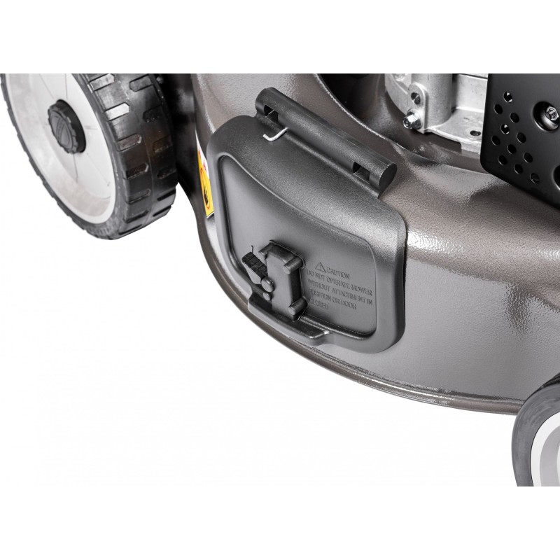 Der Benzinrasenmäher Weibang WB537SC V 3in1 ist mit einem professionellen Loncin-Benzinmotor mit 196 cm³ Hubraum ausgestattet. Das professionelle 3-Gang-Getriebe in Verbindung mit dem Antrieb über eine Kardanwelle macht ihn zu einem Rasenmäher, der für die schwierigsten Aufgaben ausgelegt ist. Die Schnitthöhe lässt sich über einen 10-stufigen Hebel einstellen, wodurch Sie die Schnitthöhe perfekt an Ihre Bedürfnisse anpassen können. Das Gehäuse des Rasenmähers ohne Riemen und dessen Abdeckung sorgt in Verbindung mit dem profilierten Messer für eine optimale Grasaufnahme. Dank des Schnellklappsystems für den Griff ist der Rasenmäher sehr komfortabel und lässt sich bequem verstauen.