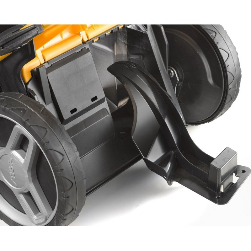 Große Räder schonen den Rasen und sorgen für bessere Traktion, während das doppelte Kugellager ein leichtes Manövrieren auf Rasenflächen oder unebenem Gelände gewährleistet. Der Radantrieb garantiert optimalen Arbeitskomfort beim Mähen.