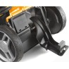 Müheloses Arbeiten und einfache Bedienung dank des ergonomisch geformten Griffs. Der Griff mit weichen Handschalen lässt sich durch eine stufenlose Verstellung an die Körpergröße jedes Benutzers anpassen, wodurch das Mähen bequem wird. Noch einfacher wird es durch den Radantrieb, der für optimalen Komfort beim Mähen sorgt.