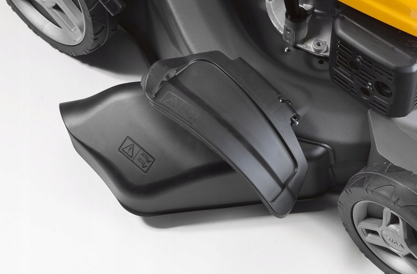 Dank dieser Funktion kann der Rasenmäher das Schnittgut nicht nur nach hinten, sondern auch seitlich auswerfen. Diese Zusatzfunktion kann Ihren Komfort beim Rasenmähen erhöhen, beispielsweise wenn Ihr Grasfangkorb nicht verfügbar ist und Sie nicht möchten, dass das Schnittgut Sie oder Ihre Schuhe verschmutzt.