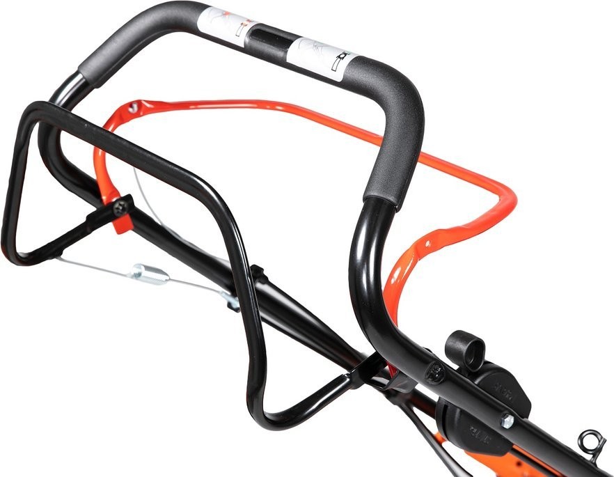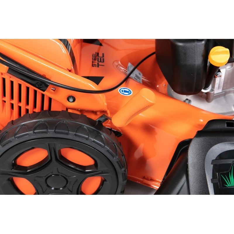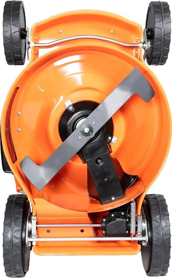 Der Rasenmäher ist mit großen Rädern mit einem Durchmesser von 200 mm vorne und 280 mm hinten ausgestattet, was für bessere Manövrierbarkeit und Fahrkomfort sorgt, selbst auf unebenem Gelände. So wird das Mähen zum Vergnügen und nicht zu einer lästigen Pflicht.