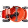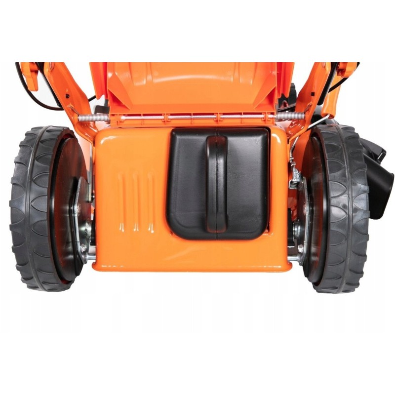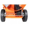 Der OLEO-MAC-Rasenmäher ist mit großen Rädern mit einem Durchmesser von 200 mm vorne und 280 mm hinten ausgestattet, was für eine bessere Wendigkeit und Stabilität auf unebenem Gelände sorgt. Dadurch wird die Arbeit einfacher und komfortabler.