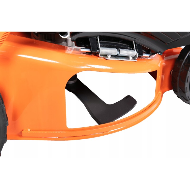 Der Rasenmäher ist mit Rädern mit einem Durchmesser von 200 mm vorne und 280 mm hinten ausgestattet, was für eine bessere Manövrierbarkeit und mehr Fahrkomfort auf unebenem Gelände sorgt. Dadurch wird die Arbeit einfacher und angenehmer.