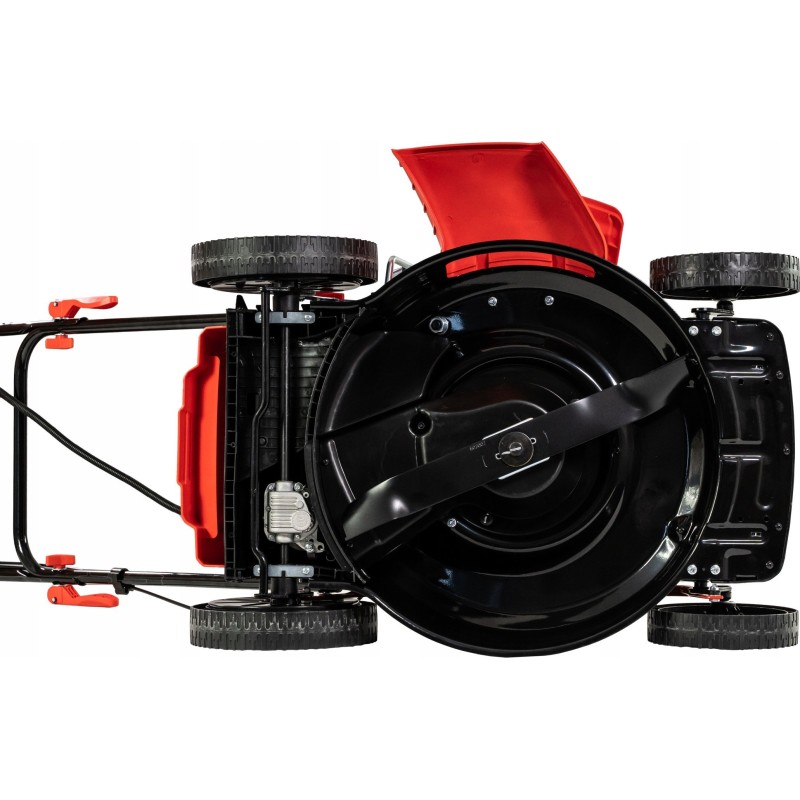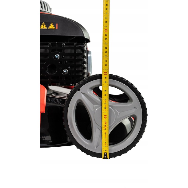 Der Rasenmäher wiegt 30,8 kg, was ihn stabil und einfach zu bedienen macht. Das Motorgehäuse aus Stahl garantiert Langlebigkeit und Widerstandsfähigkeit gegen Beschädigungen.